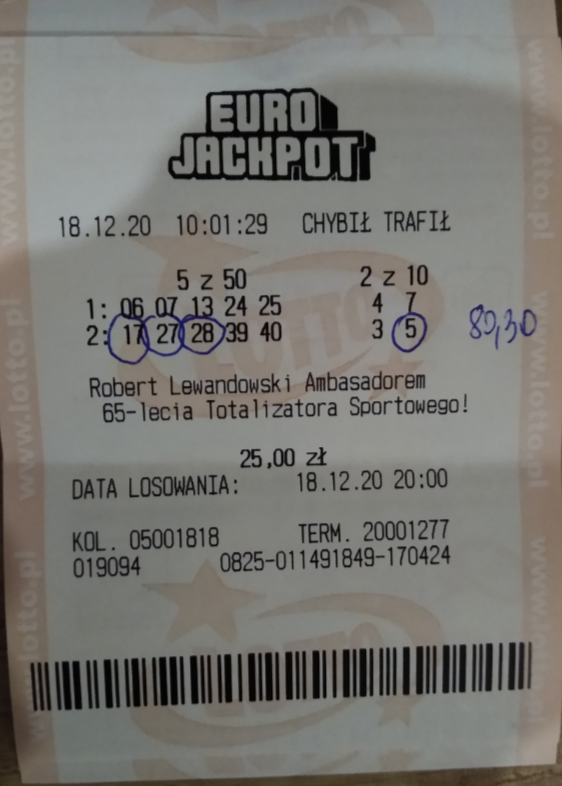 Kupowałem jeszcze inne kupony i trochę zdrapek, jakoś nie ogarnąłem