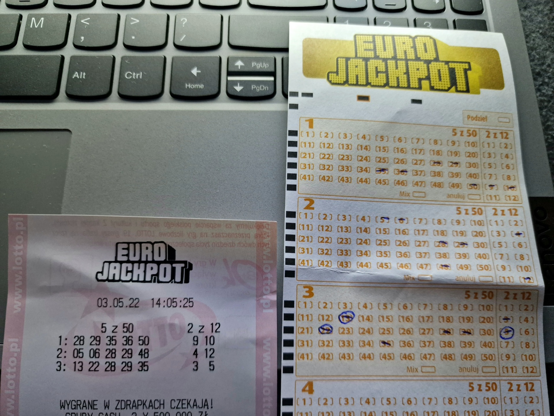 z tej okazji na piątek puściłem jeden los, fajnie by było, jak by ku pamięci chociaż najniższy stopień wygranej człowiek trafił