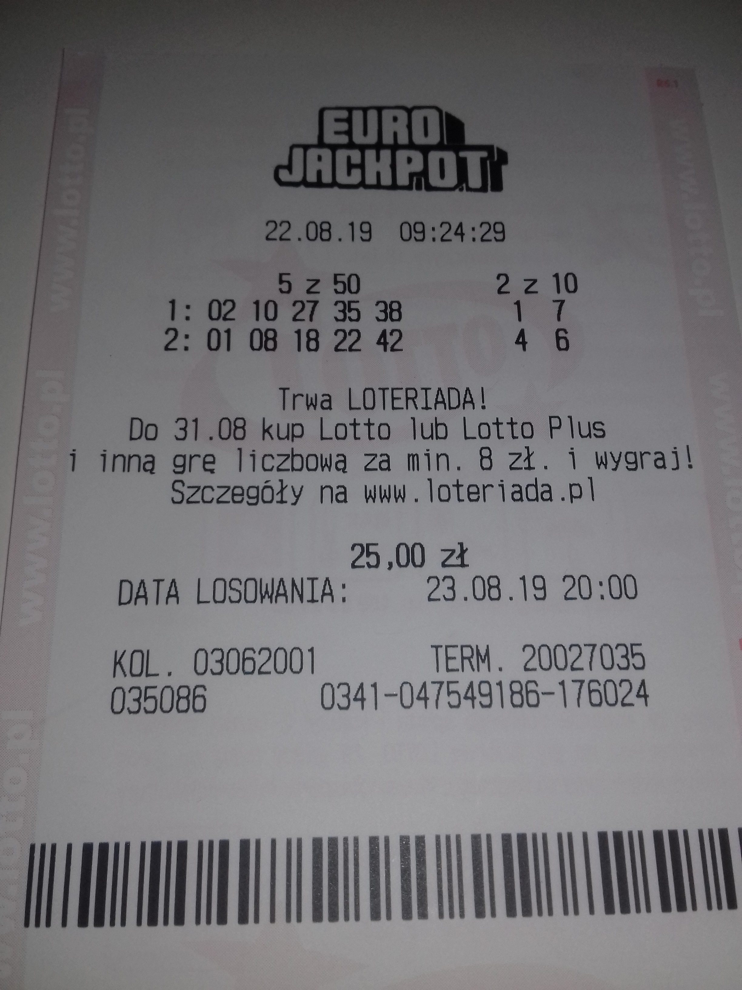 Re: EUROJACKPOT - WYGRANE NA FORUM