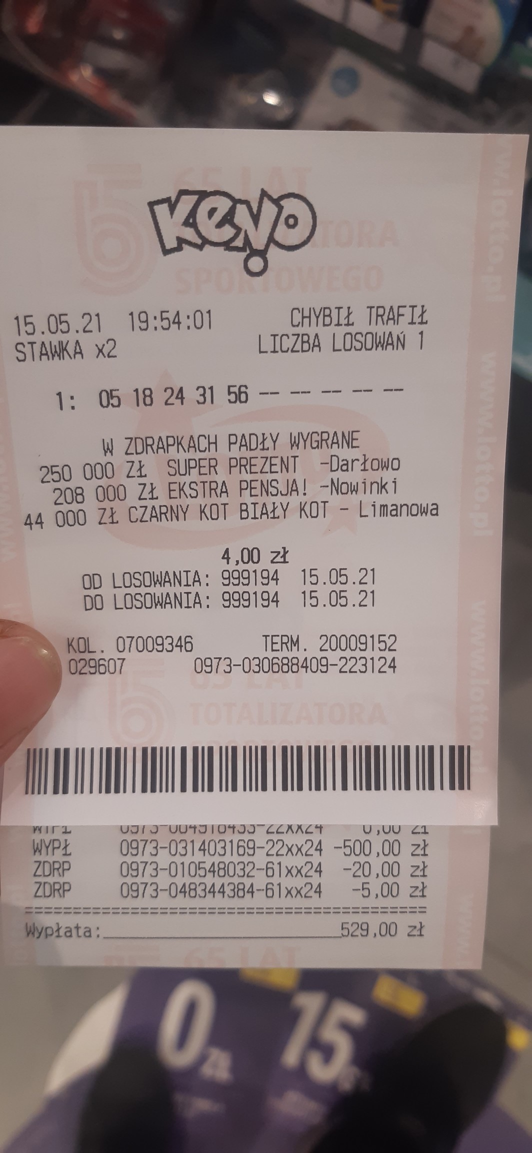 Kupując lotto i zdrapki z głupoty kupiłem po jednym zakładzie na 4 ,6 i 5 skreśleń . Ku mojemu mega zdziwieniu i radości wpadła piątka na stawce x2 czyli 500 ziko