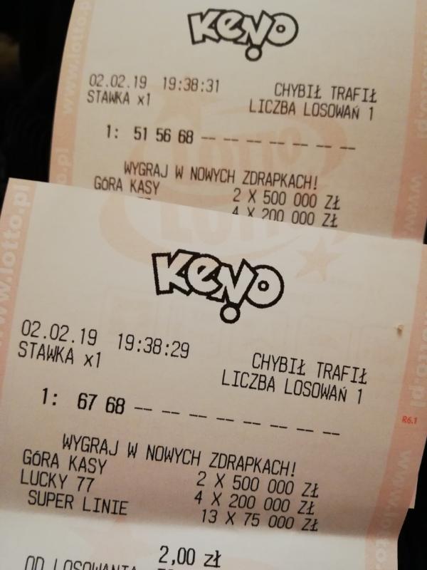 Postanowiłem dzisiaj przeznaczyć 20zł na keno i wpierw wysłałem 2/2 x8 i dupa, jedna liczba weszła, druga obok, więc wysłałem 2 zakłady na podstawowej stawce i na jednym trafione 14zł, no to wysłałem 7 zakładów i znowu jedno 14zł. Jutro znowu będę kombinował, ale ta gra cholernie nie chce bym tą stówę trafił, a to tylko 100zł, dzisiaj jest, jutro nie ma. No ale trudno, próbuję dalej