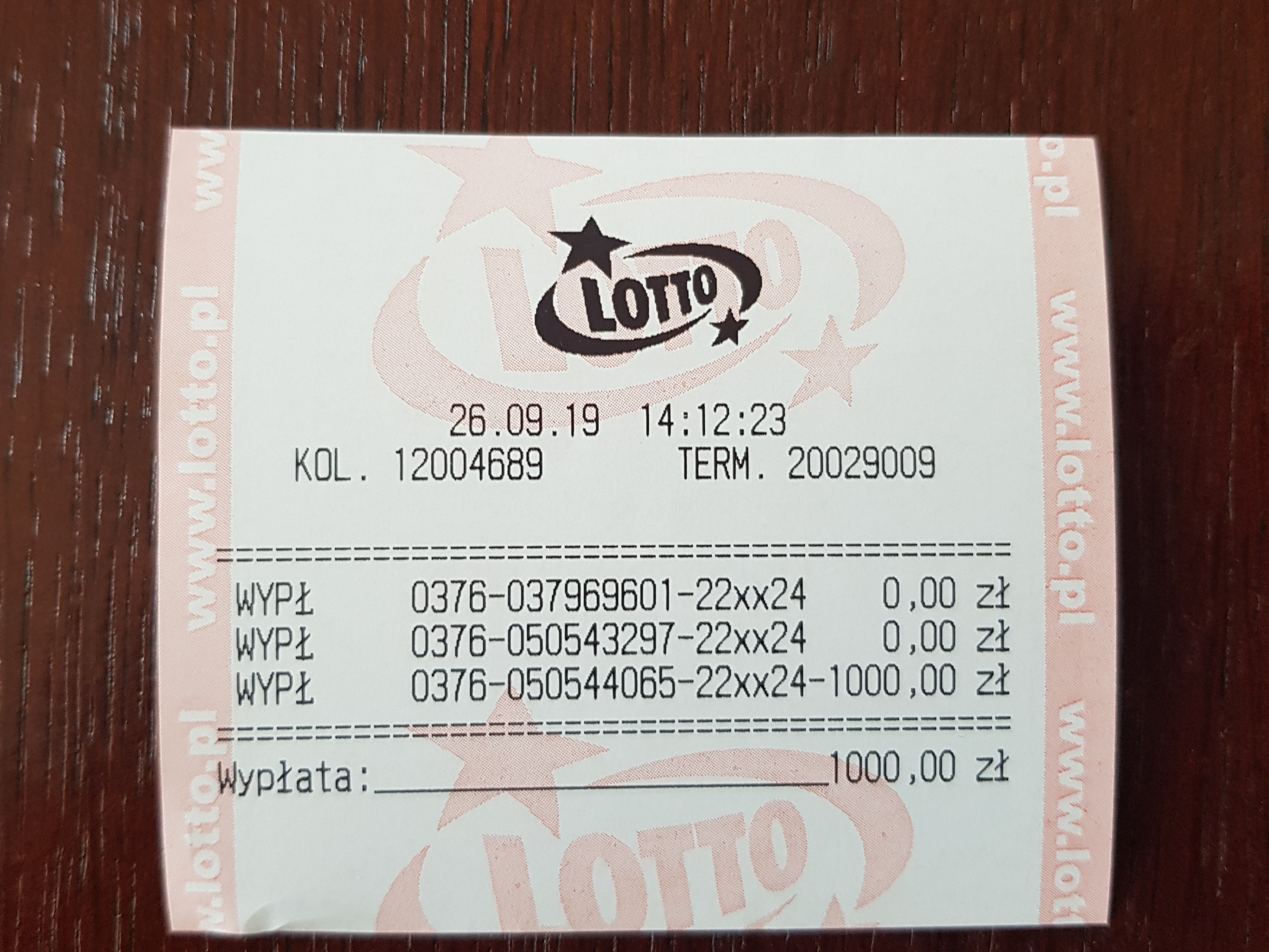 Gratuluję!Jadwiga30 pisze: ↑26 wrz 2019, 18:11No zdrapki mi nie idą w ogóle, wylapuje same pustaki, znajomy mówił że gra w Keno bo tanie i łatwiej trafić. Wczesniej zapytałam Pani w kolekturze jak sie w to gra...Więc wypelnilam dwa zakłady na dwa razy ze stawką dwa i wyskoczyło
