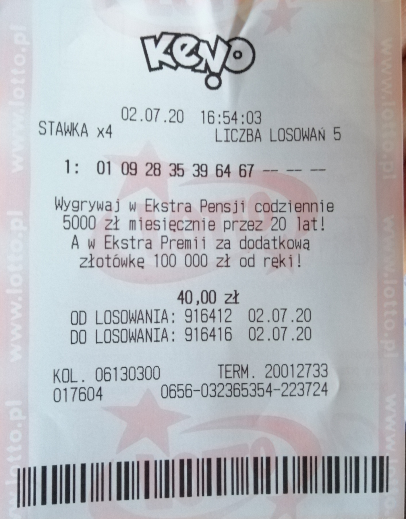 Wkład 40zl, a wygrana 56zl, maly plus, ale zawsze cieszy