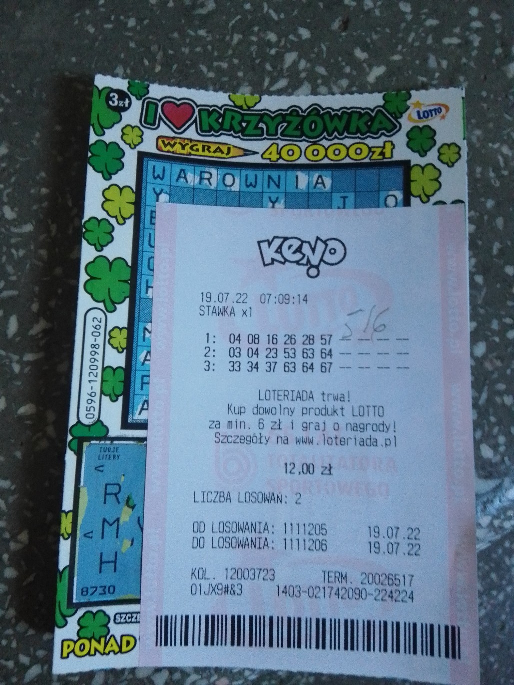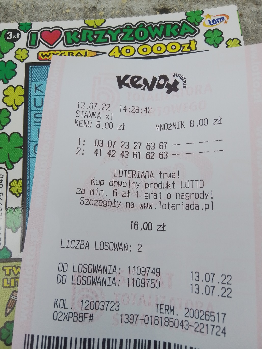 Popołudniu 6/6 z mnoz. 2zak/2los i tu lepiej bo wpadło 28zł.
