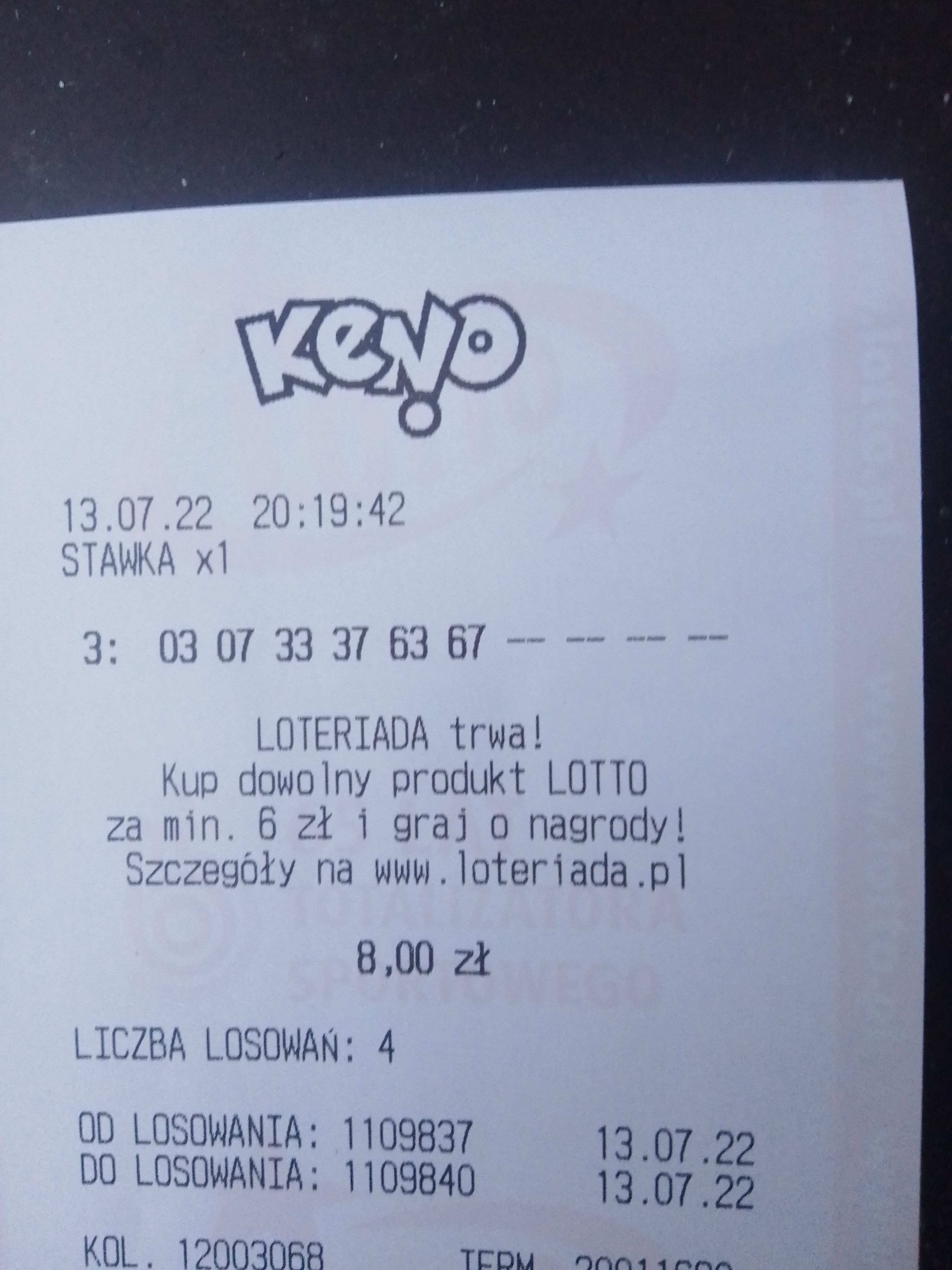 Re: Wygrane w Keno