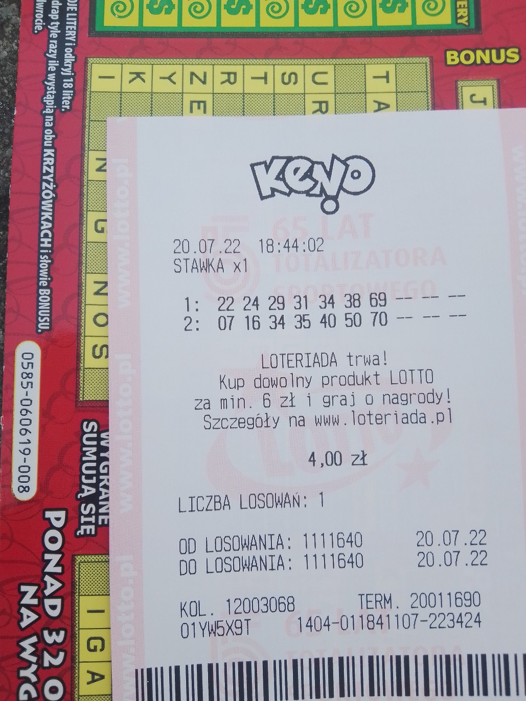 Wczoraj poniższy kupon miałem na los.z samymi jedynkami i los. poprzednie.
