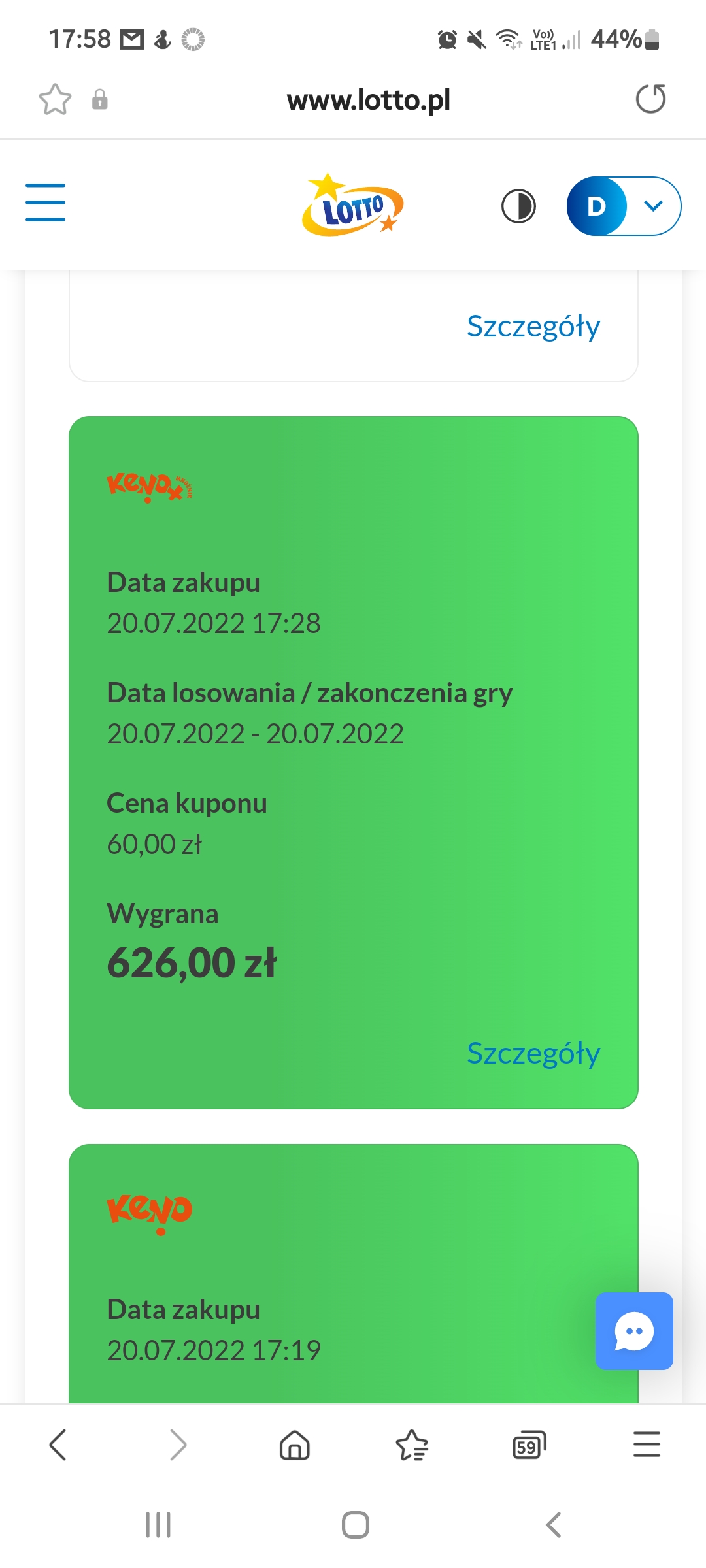 Brawo dotka 86.Tez jestem ciekawa czy wysyłasz ten sam zestaw liczb, czy grasz na chybiła? U mnie ostatnio lipa :D Ja gram na chybika bo sama nie potrafię typowac ;)