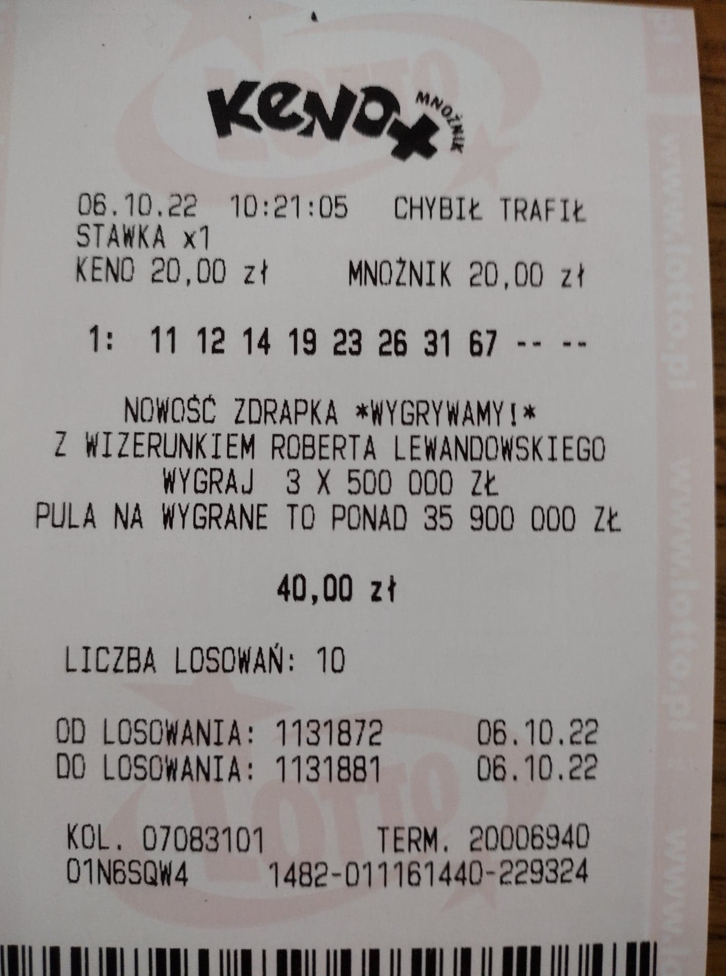 Dziś oprócz zakupu paru zdrapek coś mnie podkusiło aby przeznaczyć 100 zł na Keno. Nie spodziewałem się takiego obrotu sprawy