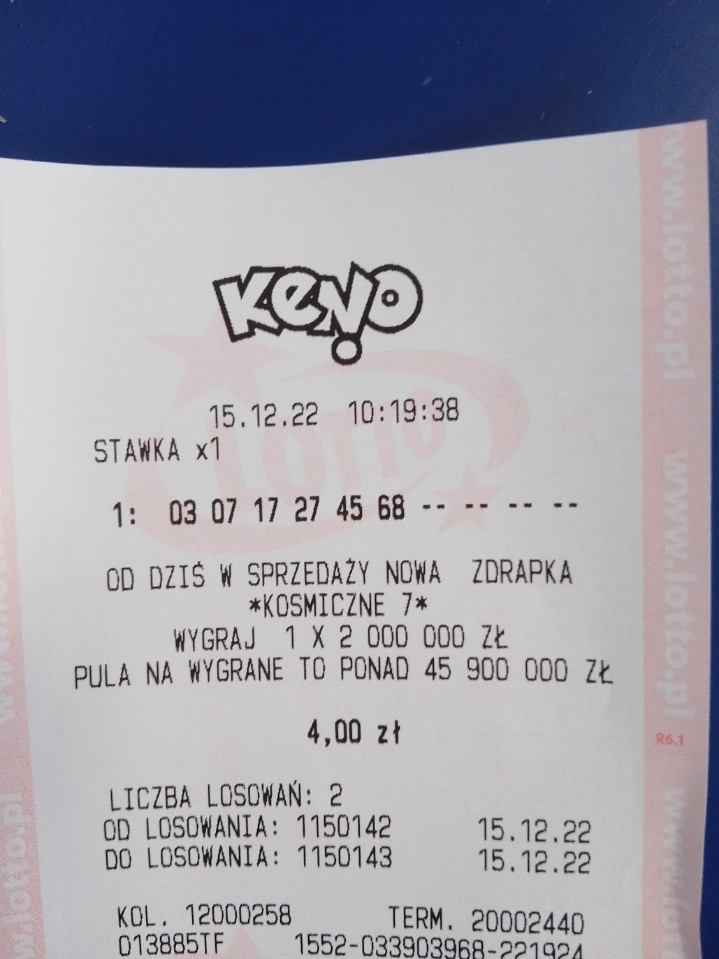 Re: Wygrane w Keno