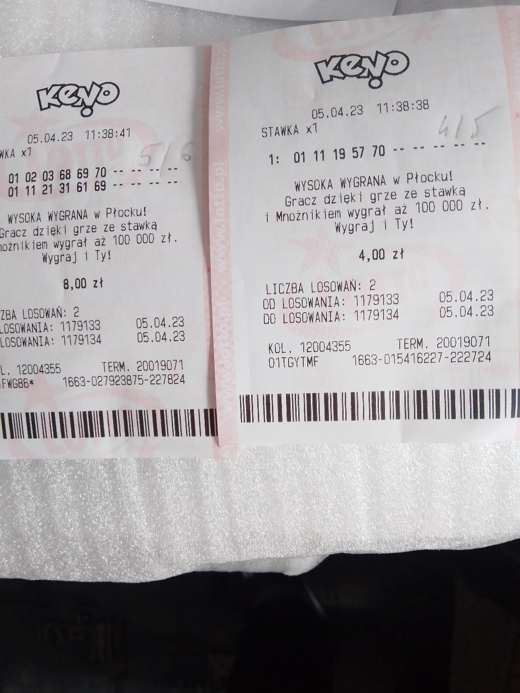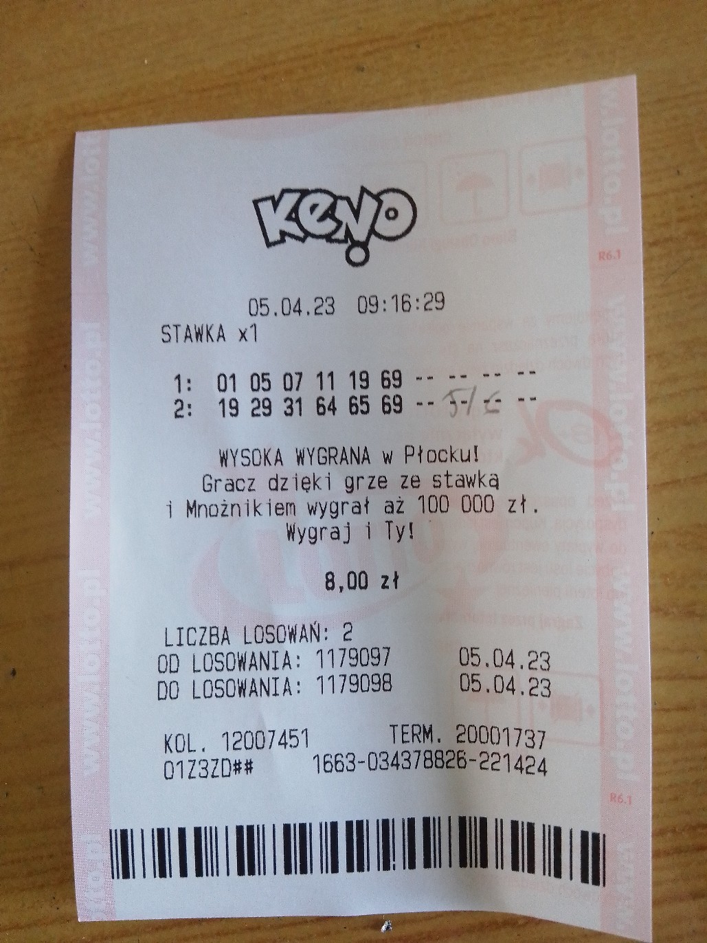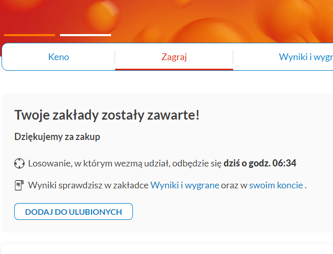 Fajna konserwacja - zakład Keno zawarty przed chwilą (10:46) a zaproszenie na losowanie dzisiaj o godz. 6.34.