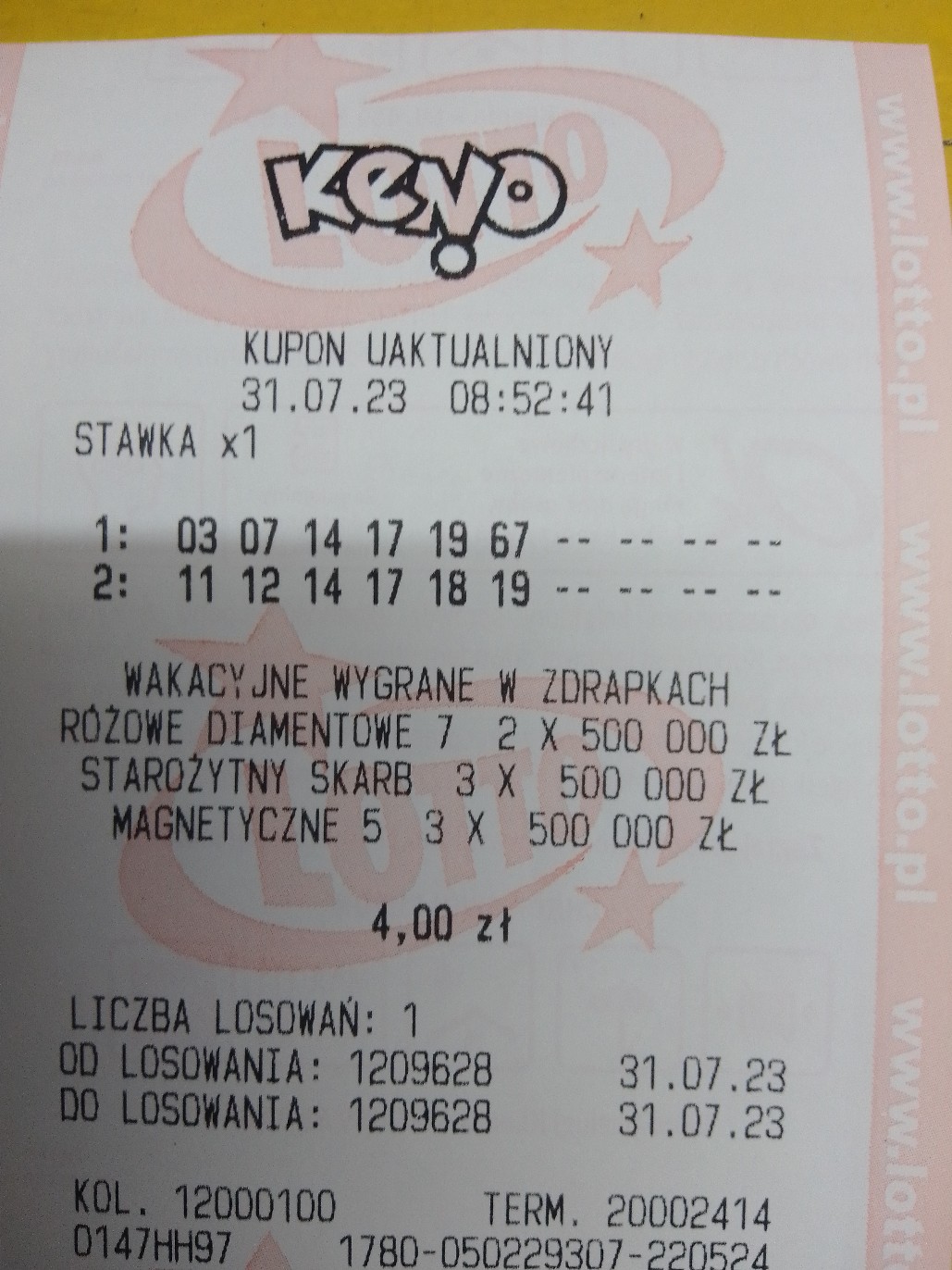 Ja też tak ustrzeliłam 6 z 7 w multi i 6 z 6 w Keno stawka razy dwa.,półtorej linii brałam pod uwagę.i na dużo losowań ,aż do skutku.powodzenia i pozdrawiam