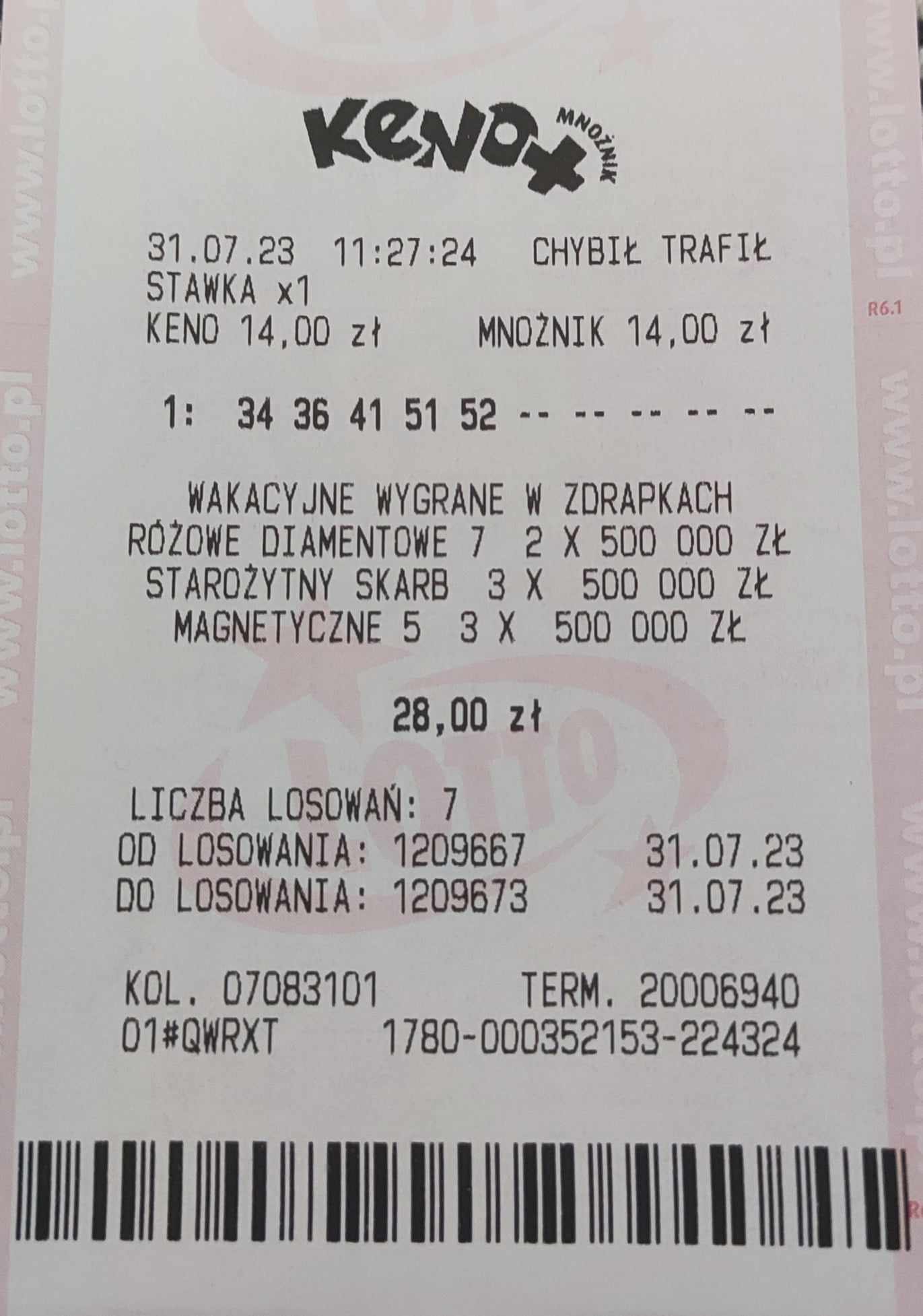 Dzięki. W ostatnim 7 losowaniu padła wygrana. Kilka lat wstecz wysyłałam na 10 skrsleń i całkiem dobrze szło. Jak zrobili mnożnik to już lipnie z 10 liczbami. Ale ja wierzę, że jeszcze szczęście się do mnie uśmiechnie i życzę Wam wszystkim w wysokich wygranych. Zdrapka podziwiam, że tak potrafi typować sam liczby. Ja daję szansę losowi