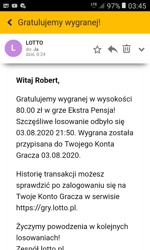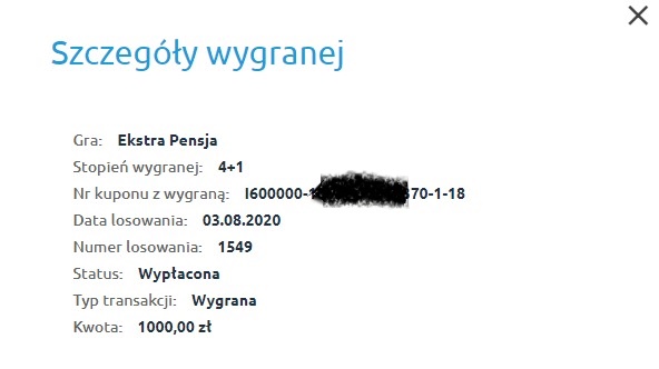Jako, że jeszcze nigdy nic nie wygrałem w tej loterii, choć przyznam, że wcześniej zdarzyło mi się może 3 razy zagrać, to dzisiaj dałem szansę szczęściu. Sprawdziłem na mapach jakie liczby najdłużej nie szły i je skreśliłem. Dodatkowo zaznaczyłem ekstra premię. Wynik mnie zaskoczył o tyle, że zarówno w pensji i premii miałem wygraną.