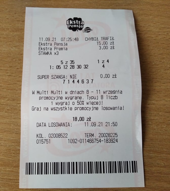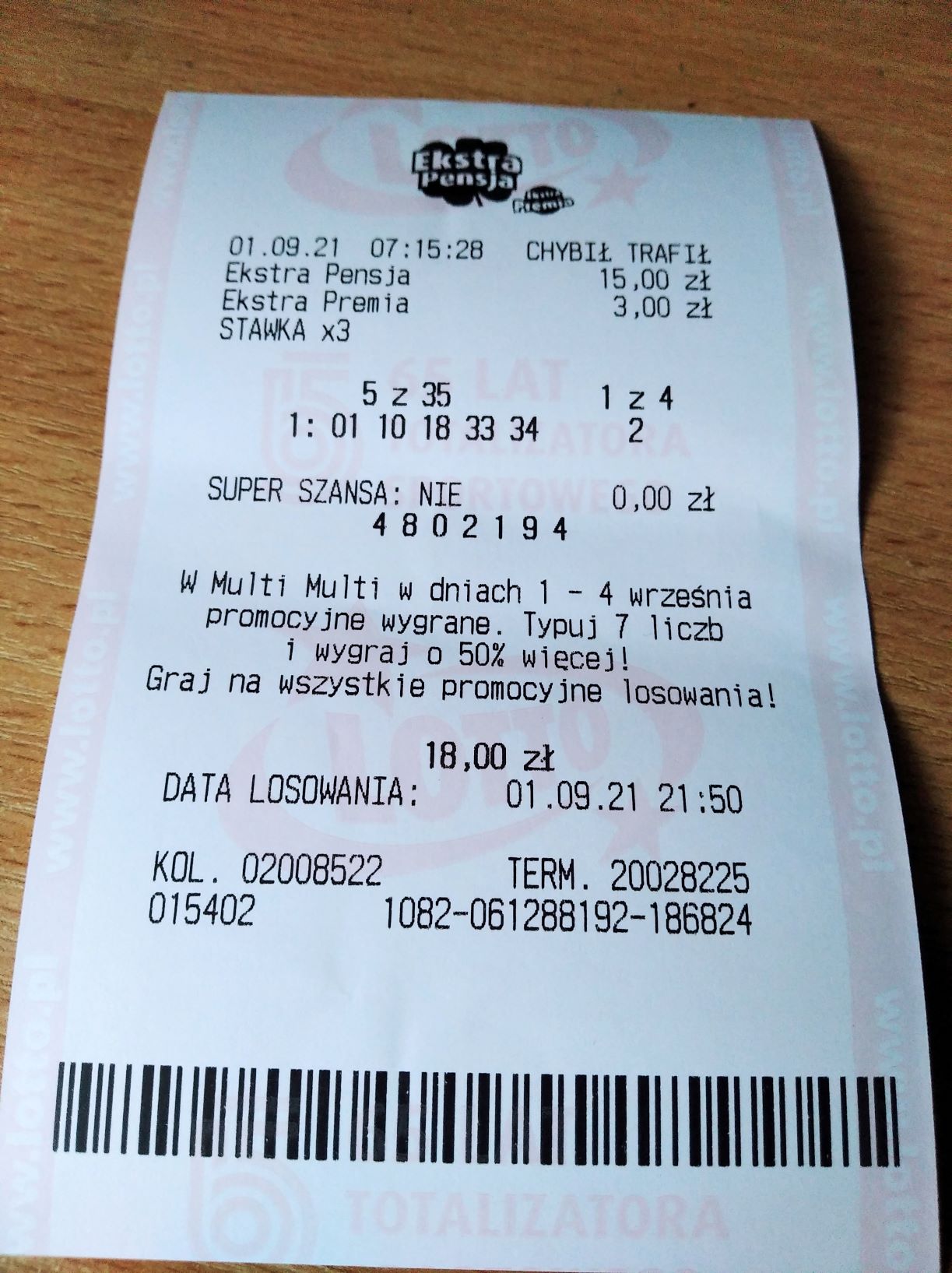 Brawo, konsekwentny jesteś z tą EP. Jadę na zmianę w Mini, ale bez większych sukcesów.. jednak z liczbówek to jedyne dwie gry które jako tako lubię. EJ i Lotto+ to kpina, a te pomniejsze i typowania mnie nie bawią jakoś.ponury_grabarz pisze: ↑12 wrz 2021, 13:28Wczoraj trójeczka ze stawką 3 - 75 zł