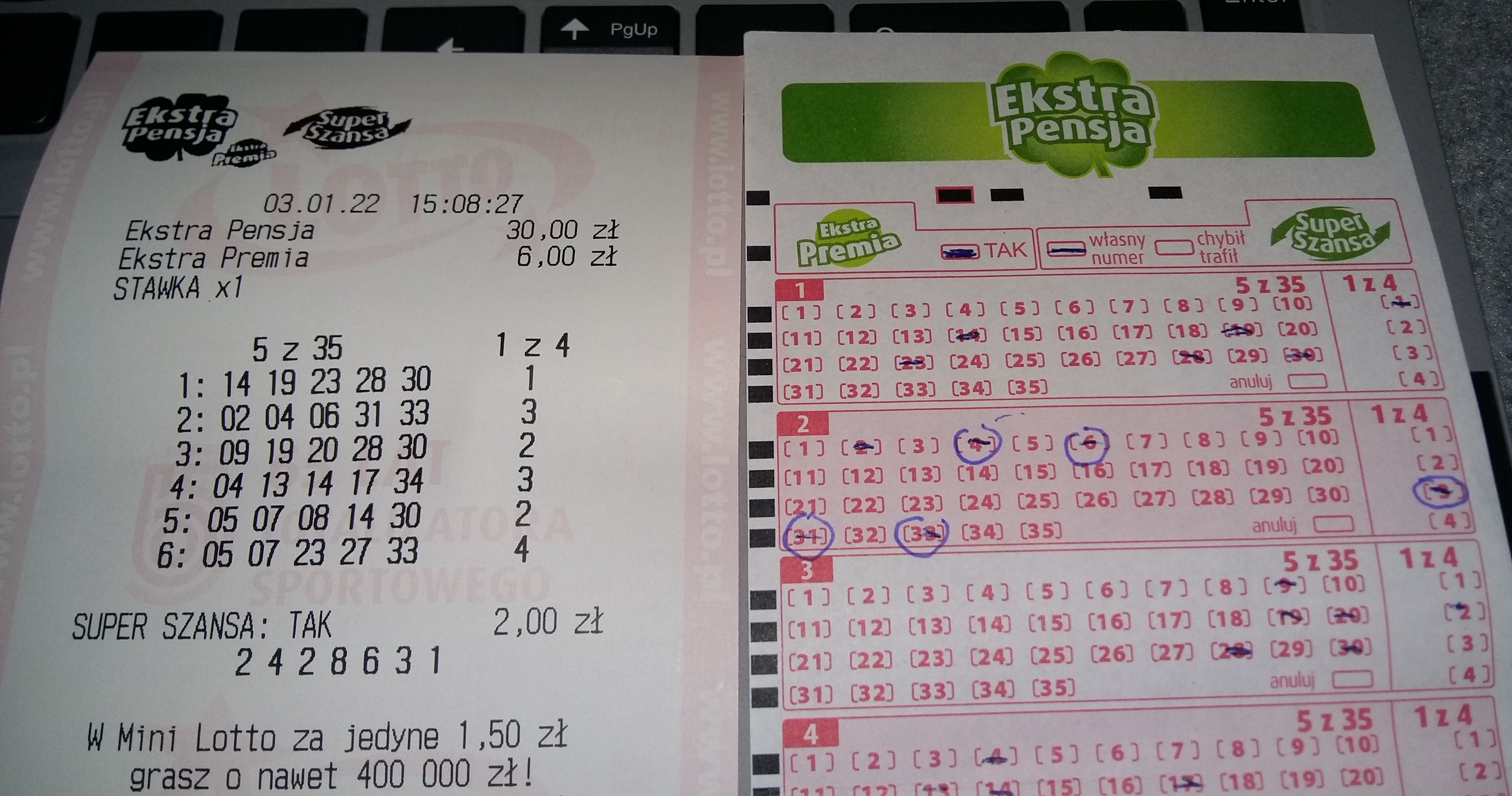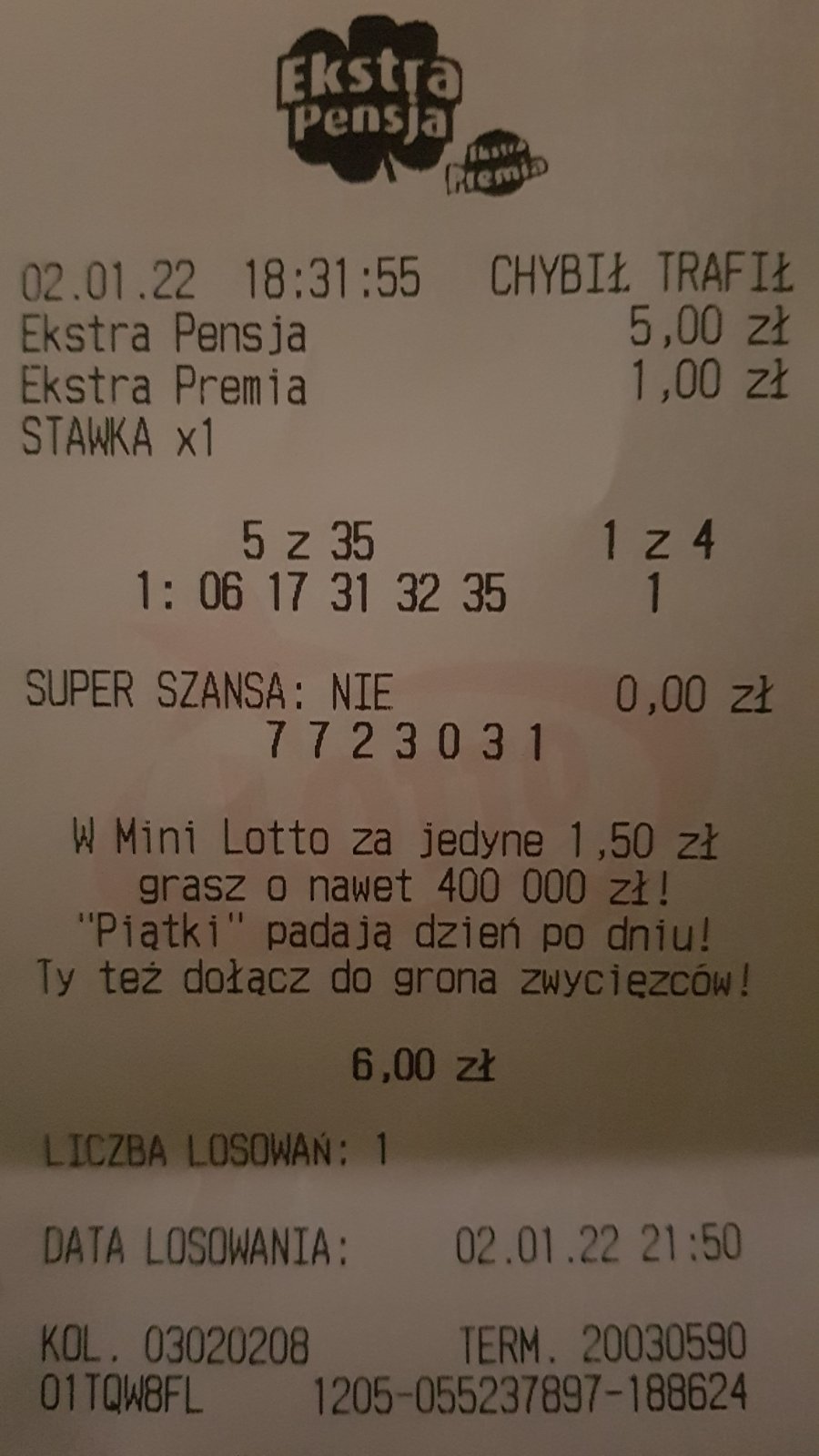 Dzisiaj tak dla odpoczynku od mini wysłałam 1 zakład EP na CT i wpadło 3+1 czyli 80 zł.