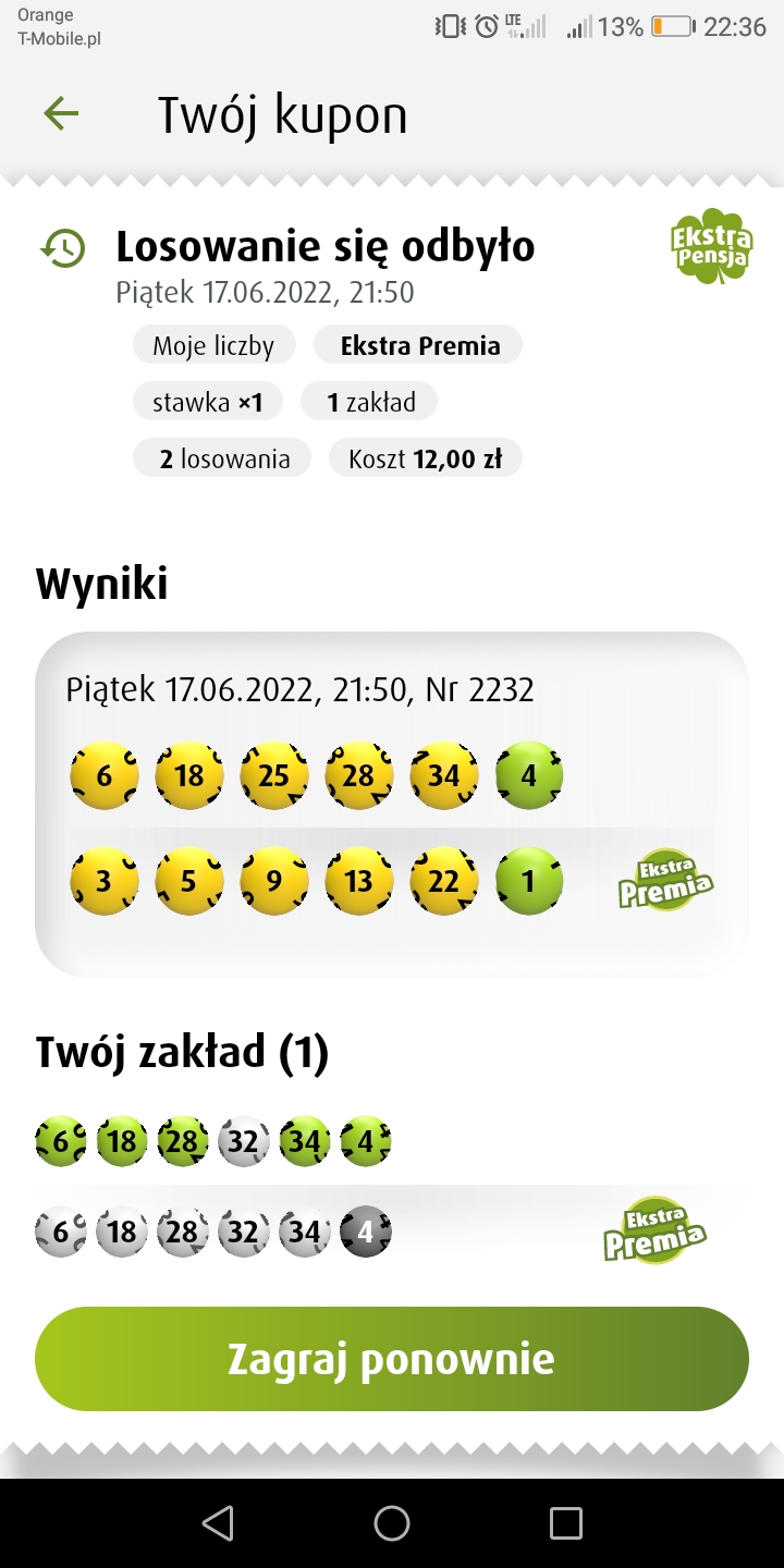 4+0 WT w Ekstra Premii ... tak ciężko trafić a tak mało płacą i jeszcze w Polsce tylko 51 osób wygrało ...