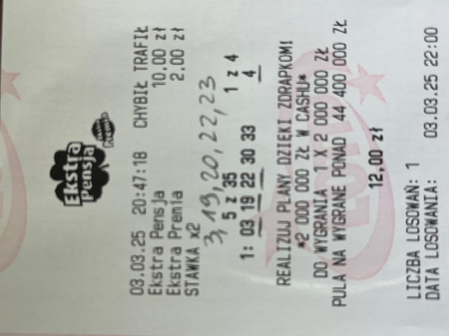 dziś zagrałem w extra pensje. bo od czasu gdy podnieśli stawke w mini Lotto nic nie mogę wygrać. nawet glupiej trójki.