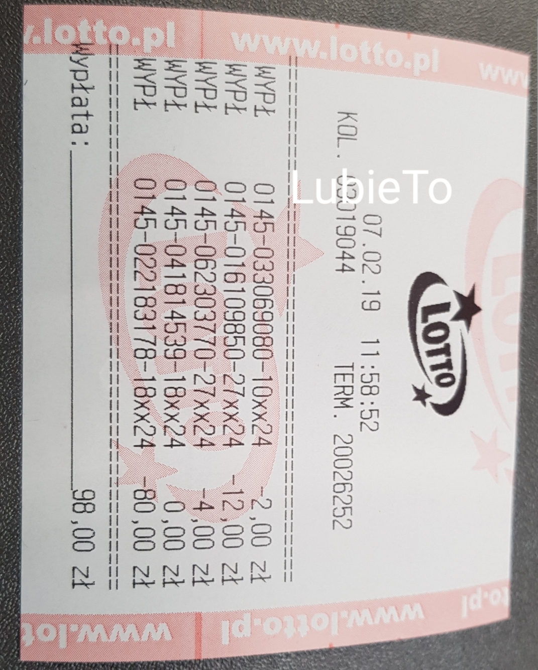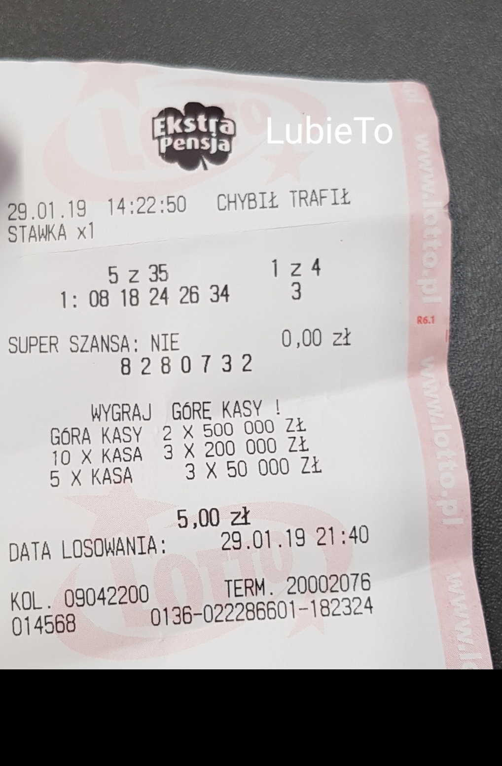 Dzięuję za gratulacje. Fotka dodana. Nie grałem systemem, tylko analizowałem poprzednie losowania. Chyba, że to tzw. "mój system"