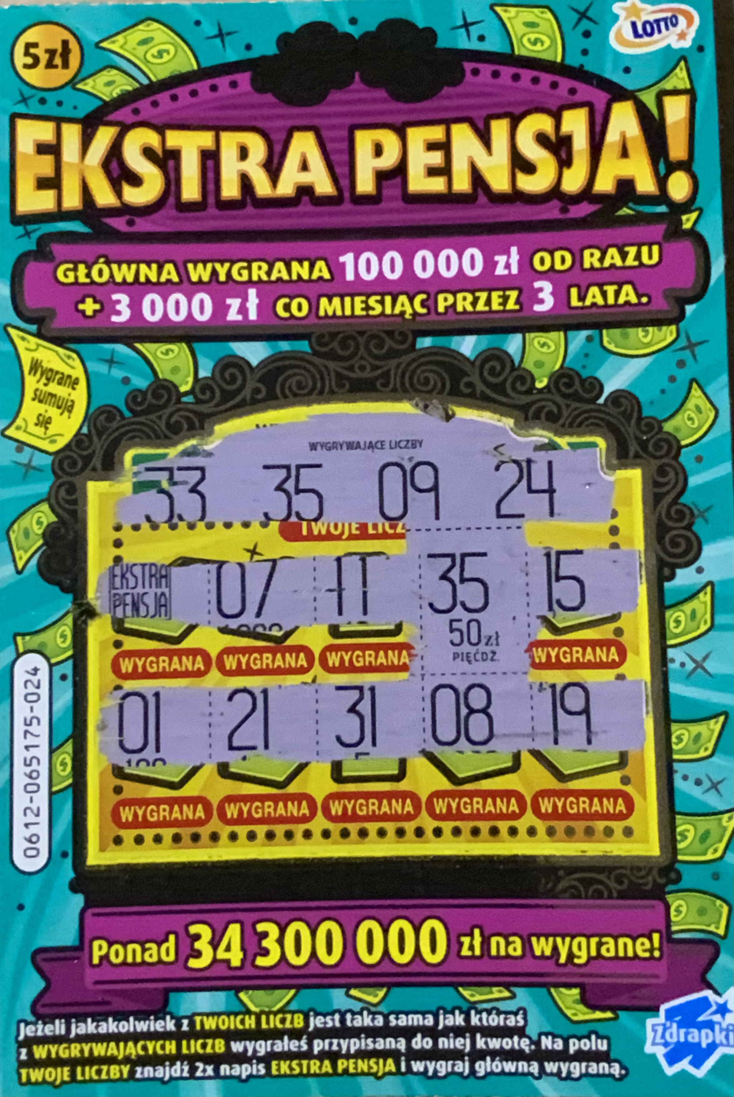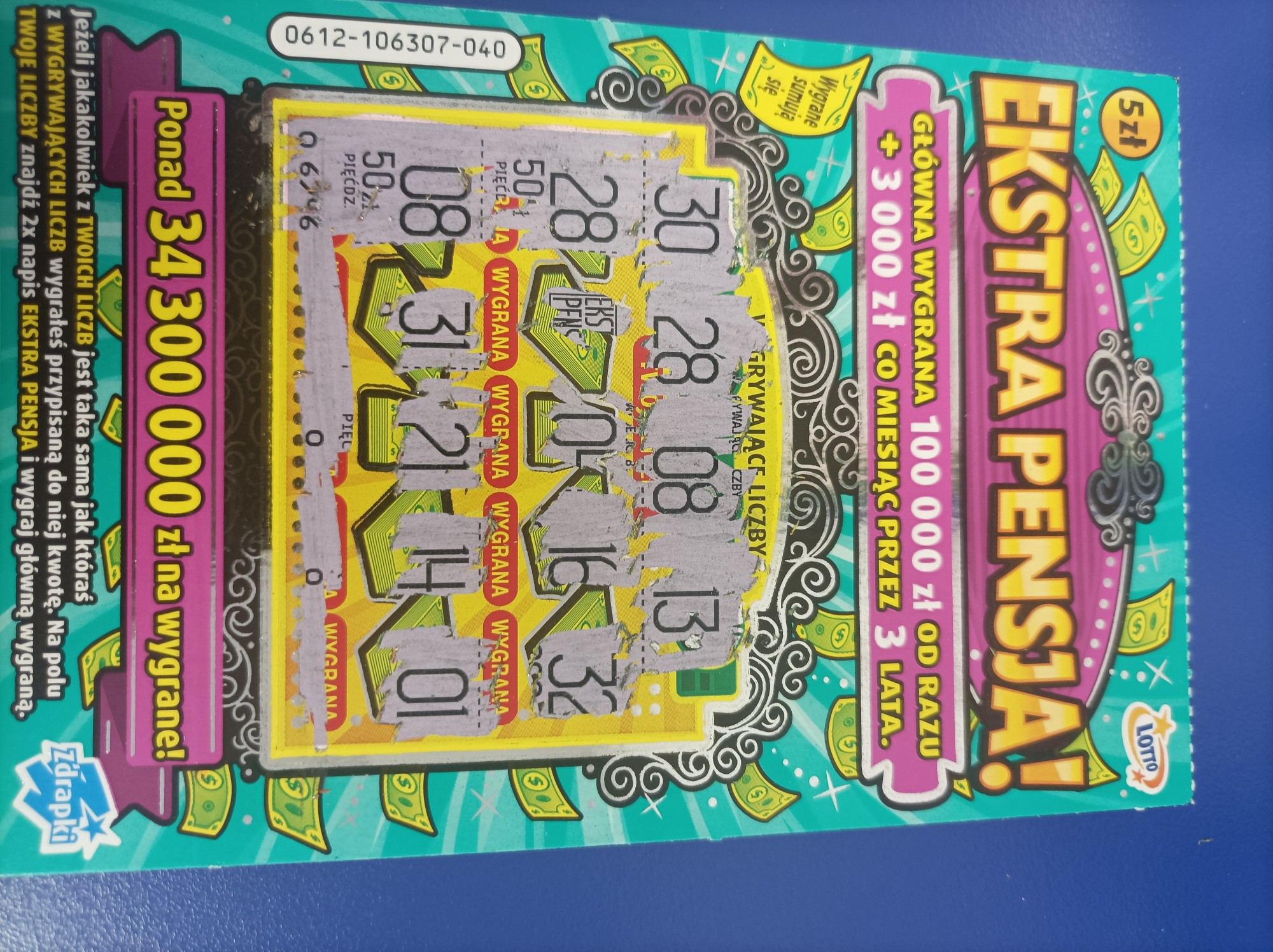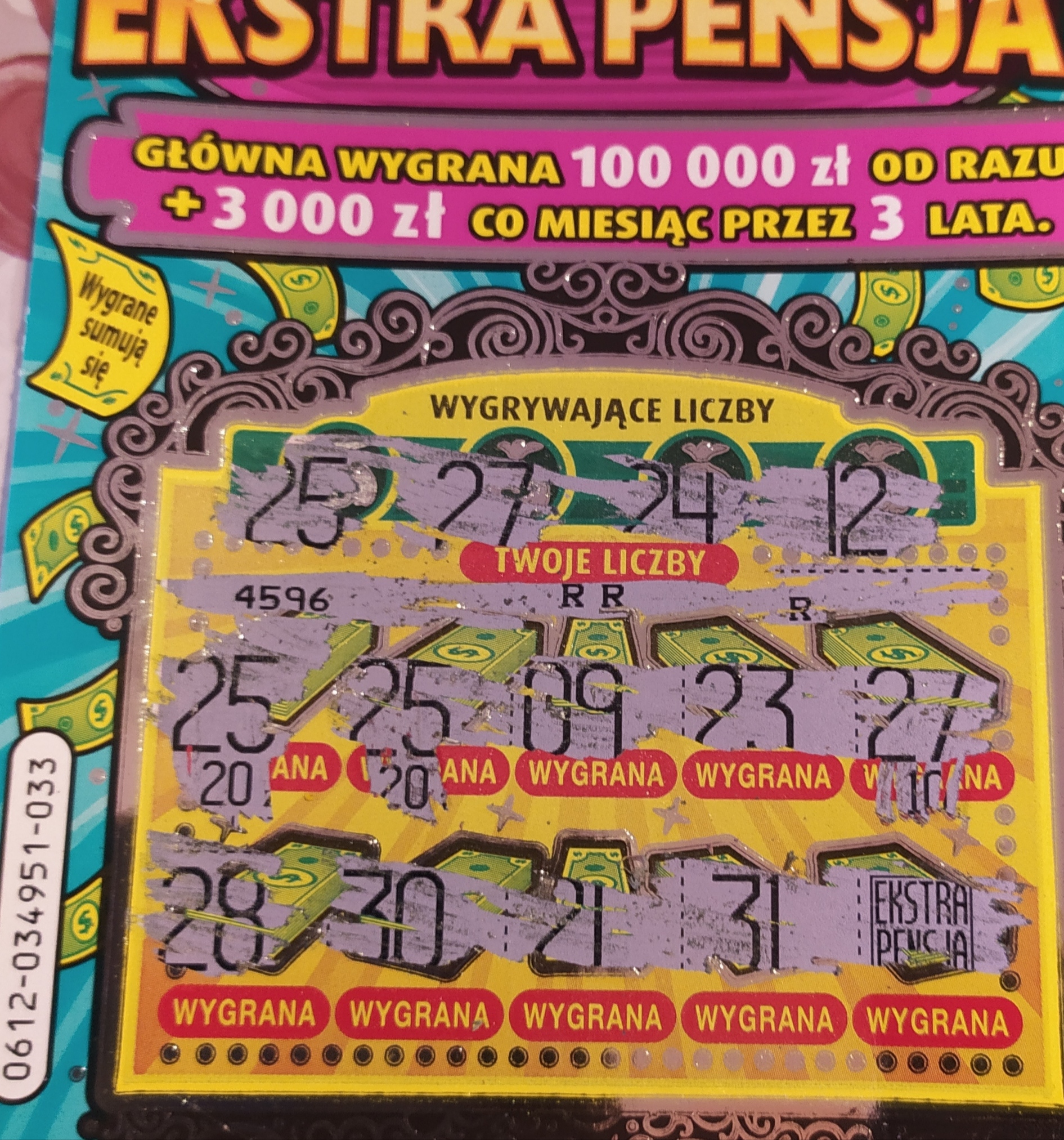 Przy jednej zdrapie wpadła mi stówa , kupiłem jeszcze jedną licząc na 50 ziko , ale niestety pusta była. Dodam , że to chyba pierwsza stówka w mojej karierze w tej zdrapce
