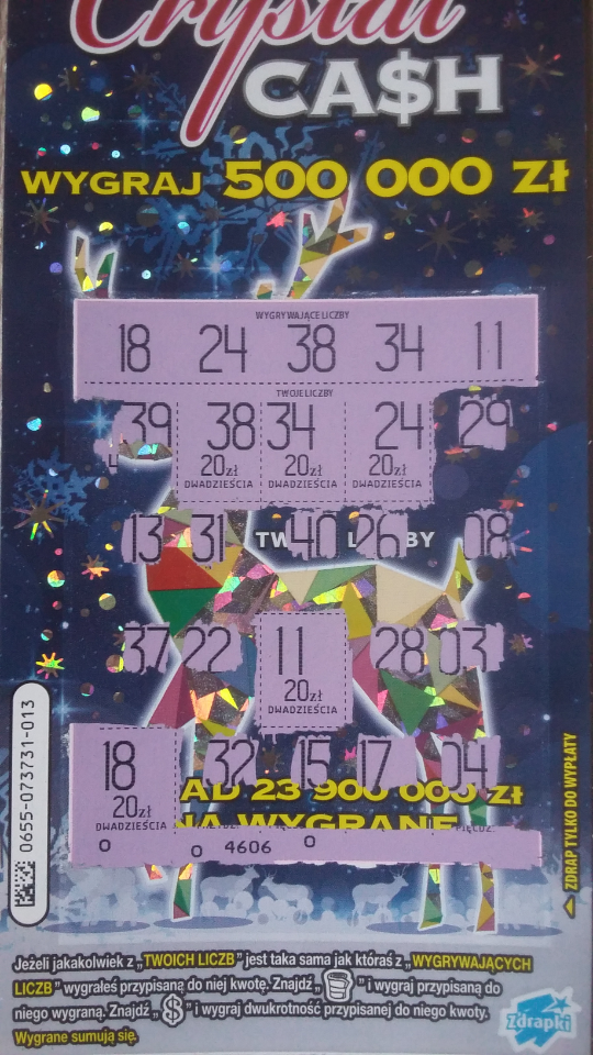 Nikt nie drapie tych pustaków? Ja dziś nie robię premiery, wczoraj oczyściłem przy 1 szt kalendarz i przy 3 sztukach krzyżówkę XXL. Obie z moim nr dały po 50 zł, ale i tak minus 23