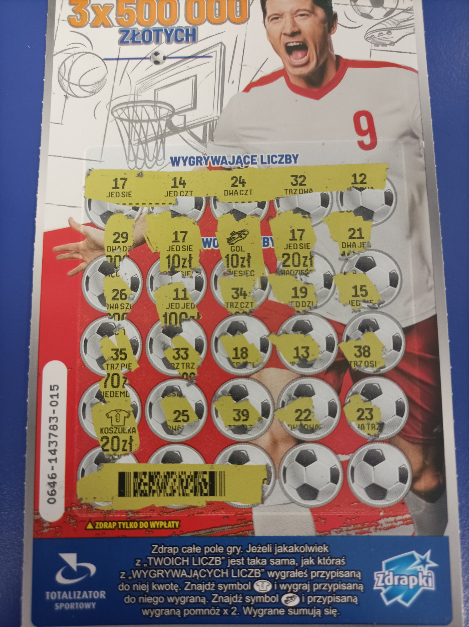 Ja ostatnio też dwie sztuki i wpadło w jednej z nich 50zl. Tyle że ta druga wersja zdrapki bez głównej już.