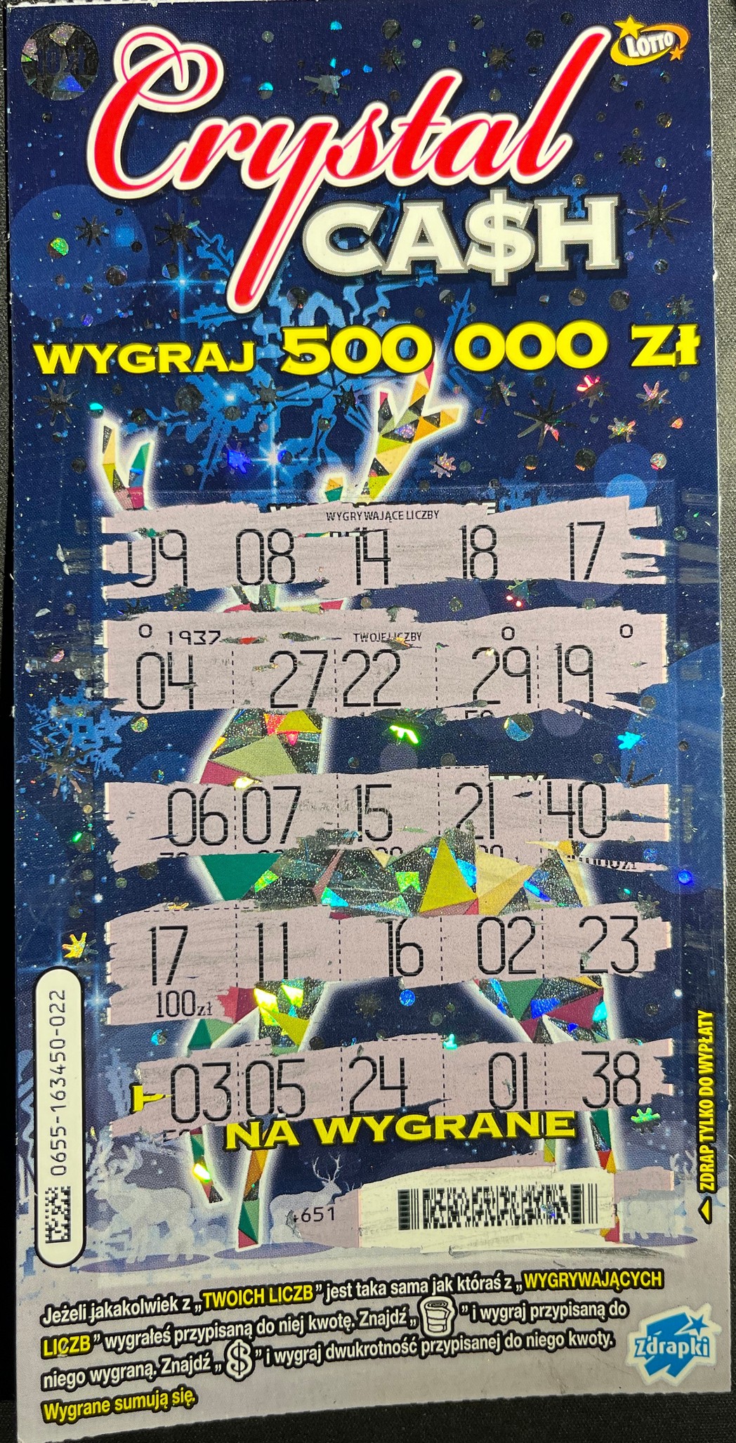 Potwierdzam, że te miejsca gdzie jest srebrna warstwa drapie się fatalnie. Wczoraj na premierze 2 sztuki (001 i 002) ale obie puste. Dziś jedna sztuka (021) z innego miejsca i wpadło 30 zł (HHH).