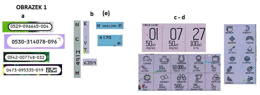 a - charakterystyczna "ładna" czcionka numeru zdrapki, a sam numer jest w owalnej ramce