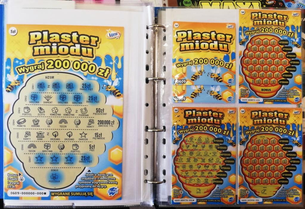 Zdrapka >609 Plaster miodu< z kwadracikiem przy pierwszej zdrapce z paczki.