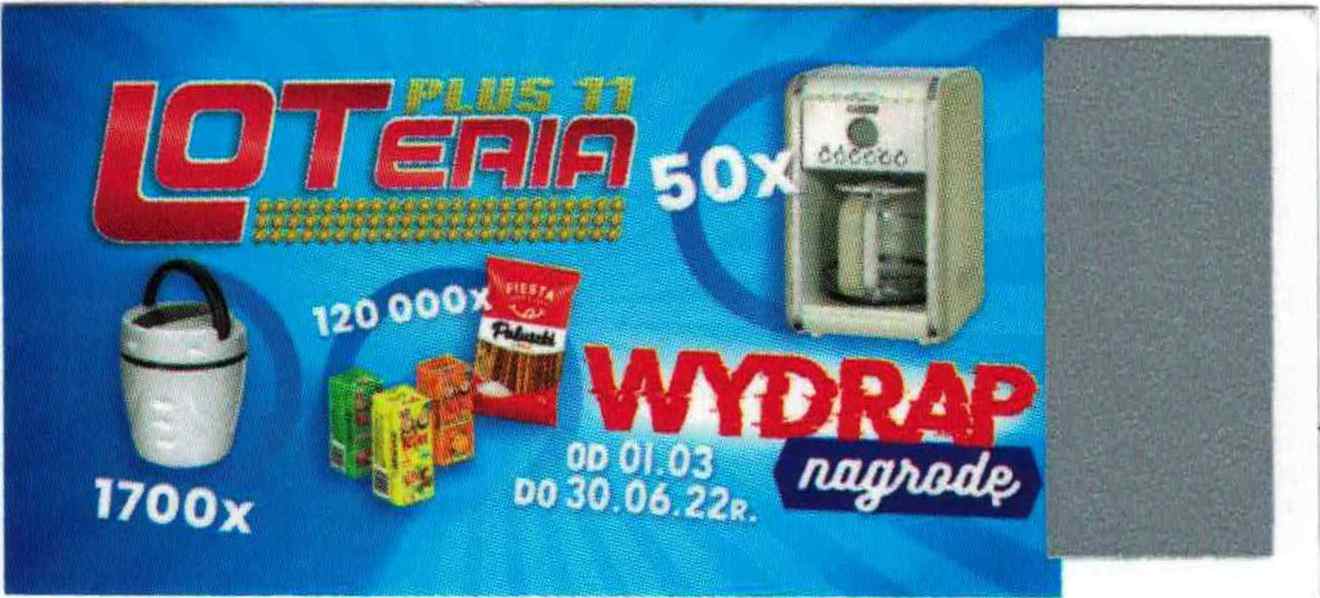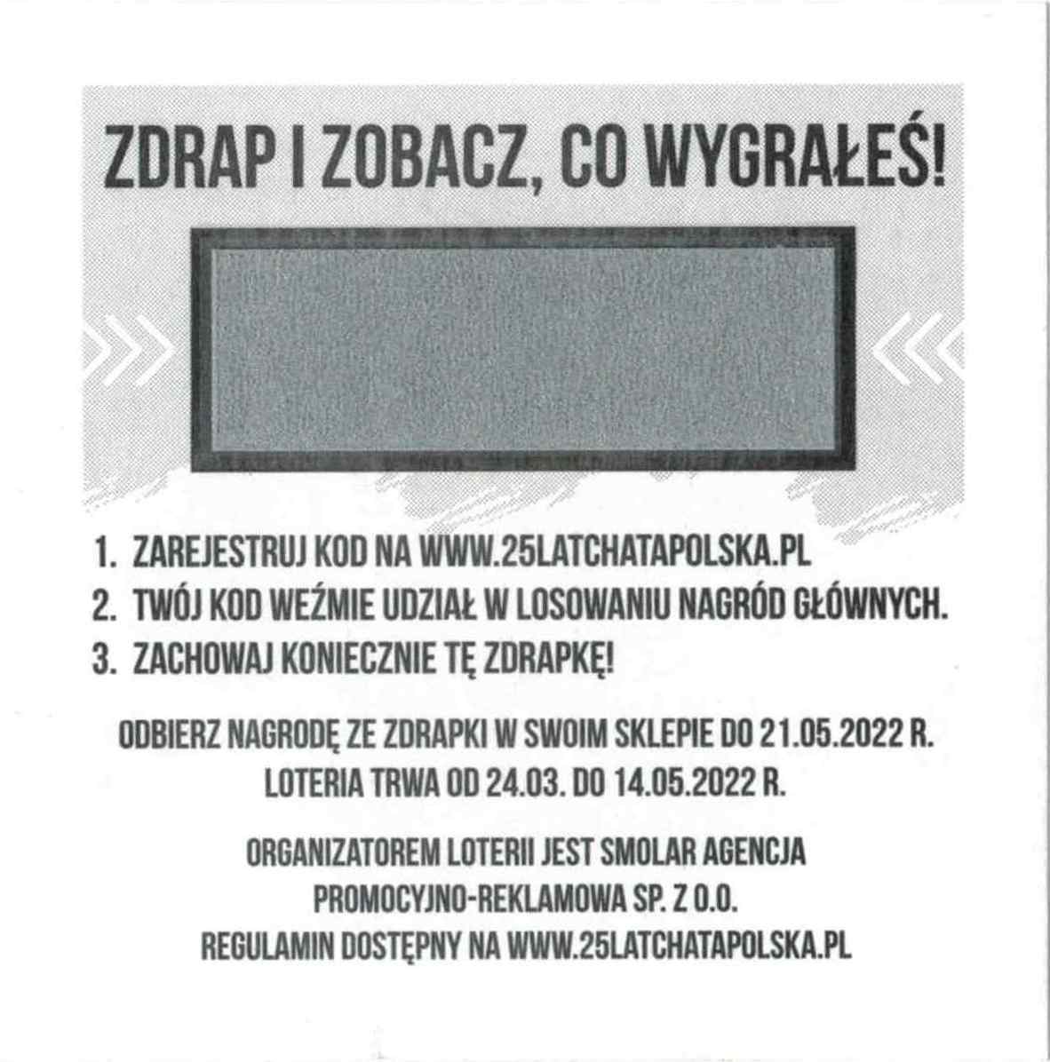 Dokonując takich zakupów otrzymacie przy kasie zdrapkę. W tym momencie wszystko zależy już tylko i wyłącznie od Waszego szczęścia. Pamiętajcie, że odbiór nagrody możliwy jest tylko po przekazaniu oryginalnej zdrapki, a także okazaniu oryginału dowodu zakupu. Loteria trwa w dniach 01.03.2022 – 10.04.2022 lub do wyczerpania zdrapek, także nie zwlekajcie z zakupami, gdyż każdy dzień to możliwość zdobycia atrakcyjnych nagród.
