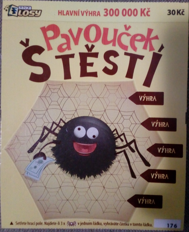Druga część zdrapek zza naszej południowej granicy. Generalnie wybór spory. Ceny zdrapek zaczynają się od 10 koron (chociaż nie widziałem) a kończą na 300 (niecałe 60 ziko). Punktów sporo, a niektóre dziwne - spotkałem zdrapki w sklepie z artykułami metalowymi czy serwisie pilarek STIHLa
