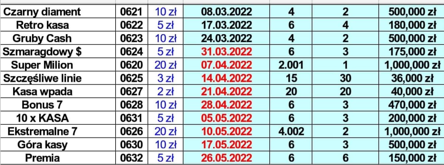 Przytłaczające jest to ile ładują do oferty praktycznie takich samych zdrapek z identycznymi zasadami, ceną losu i pierwszorzędnie skopanymi tabelami wygranych. To juz obecnie przeważająca norma, a nie jedna z części oferty zdrapkowej. Najlepszy był okres przejściowy gdy wchodziły pierwsze losy po 5 i 10zł ale nadal był spory wybór w losach tanich.
