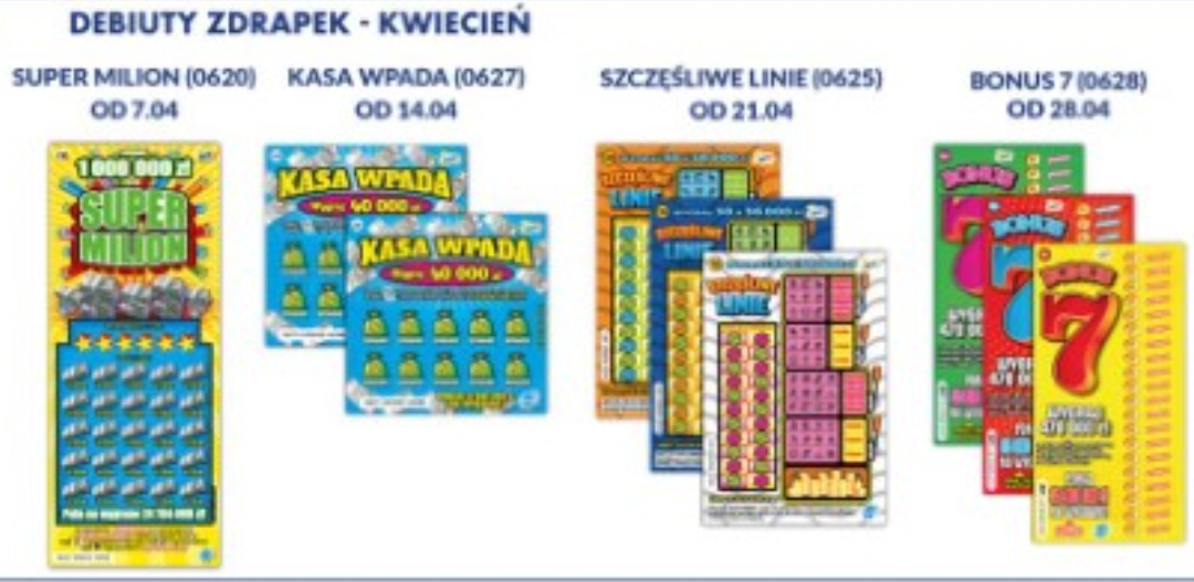 Nowe premiery powinny zacząć pojawiać się raz na 2 tygodnie. Trzeba pozwolić się wyprzedać temu co jest i ze spokojem doprowadzić ilość zdrapek w sprzedaży do 30-35. To i tak będzie bogata oferta ponad 5 różnych zdrapek w każdej kategorii cenowej... Po kiego trzymają w ofercie ponad 20 "różnych" zdrapek w cenie 5 zł? To jest przeogromna przesada.