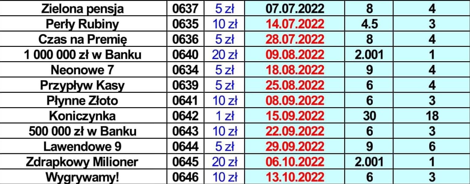 To dopiero przedsmak, przez najbliższe pół roku będą wchodzić same zdrapki podobne tej "czas na premię" lub jeszcze gorsze. 2022 to jest ten przełomowy rok gdy zdrapki zostaną już całkiem pogrzebane żywcem. Praktycznie w roku nie weszło i nie wejdzie nic co by było warte naszej uwagi. I trzeba też mieć gdzieś z tyłu głowy że ostatni raz widzimy Szybkie 50, Super 7, Krzyżówkę po 3. Po prostu nie zostanie nic