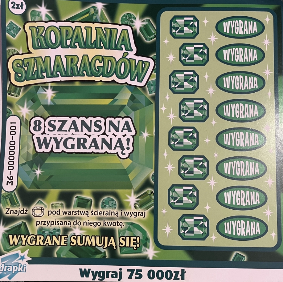 Szkoda.. liczyłem na coś ciekawszego z dużą ilością rubinów.grzybek pisze: ↑16 gru 2022, 21:31Widziałem dzisiaj wzór Kopalni Rubinów, zdrapka wizualnie wygląda tragicznie![]()