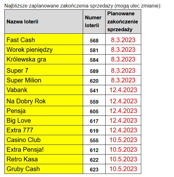Re: Rozpoczęcie/zakończenie sprzedaży zdrapek [Przybyło - ubyło]