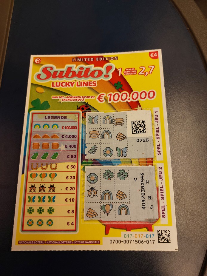 Będąc w ostatnich dniach w Belgii skusiłem się na dwie zdrapki w dworcowym sklepie - po jednej za 3 i 4 euro. Obie zdrapki oferują po dwie gry.