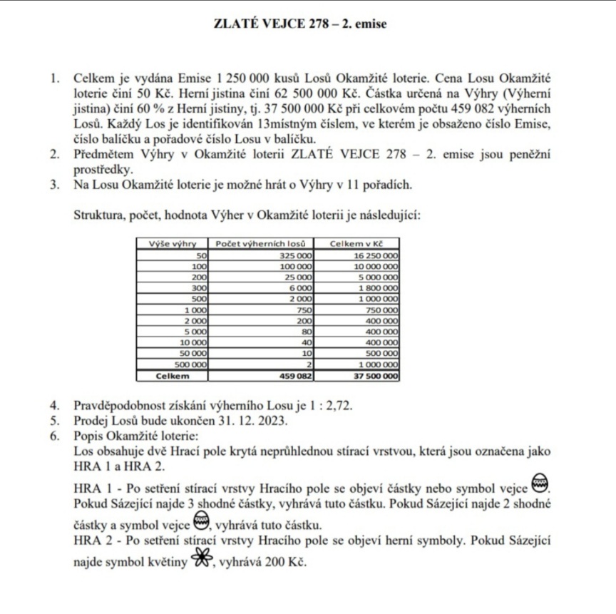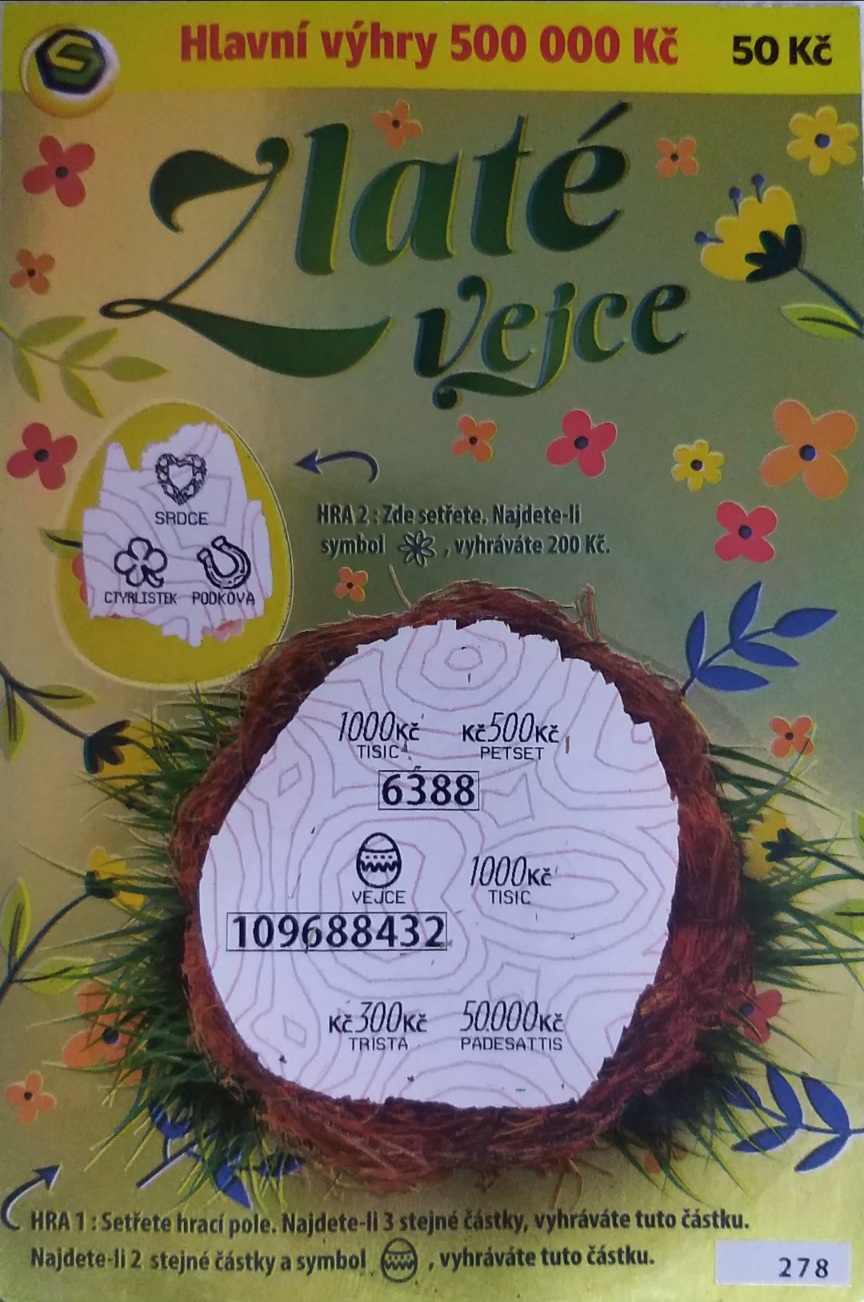 Nic dodać nic ująć, kupiłem sobie dziś kilka ot pojedynczych za 200 Kc i zwrot 160 Kc ale za to mój kolega, którego namówiłem aby coś kupił wziął Złote Jajko za 50 Kc i nie wiem jak to zrobił ale trafił