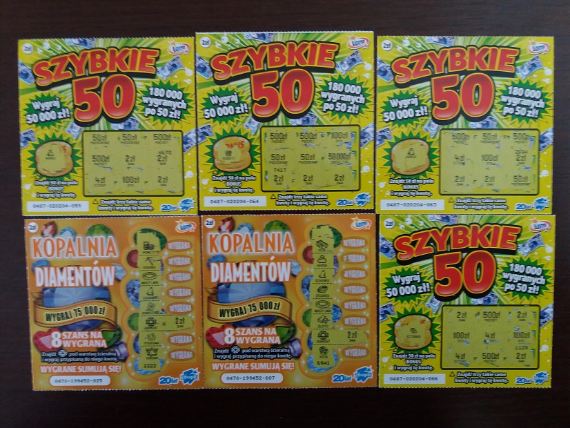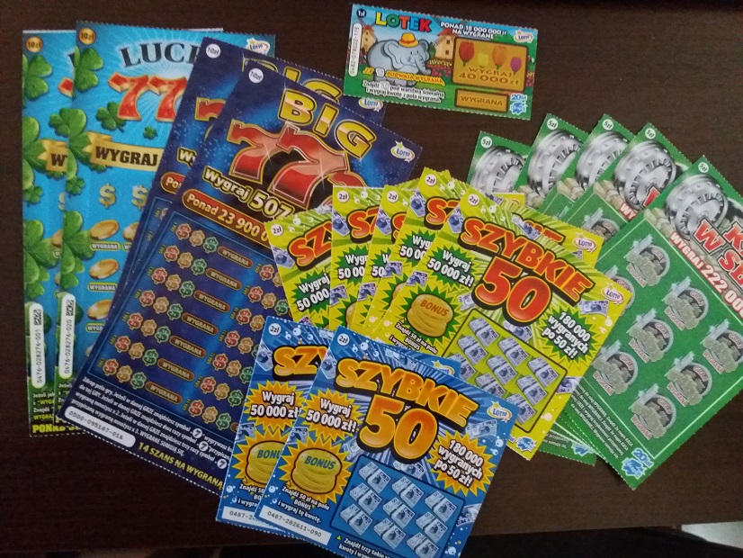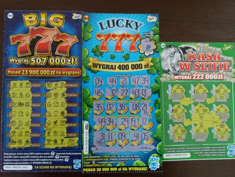 Reszta pustaki. Moich zdrapek było za 80 zł, a żona kupiła za 10 zł. Ona nie trafiła nic, ja natomiast 77 zł, więc jestem tylko 3 zł w plecy