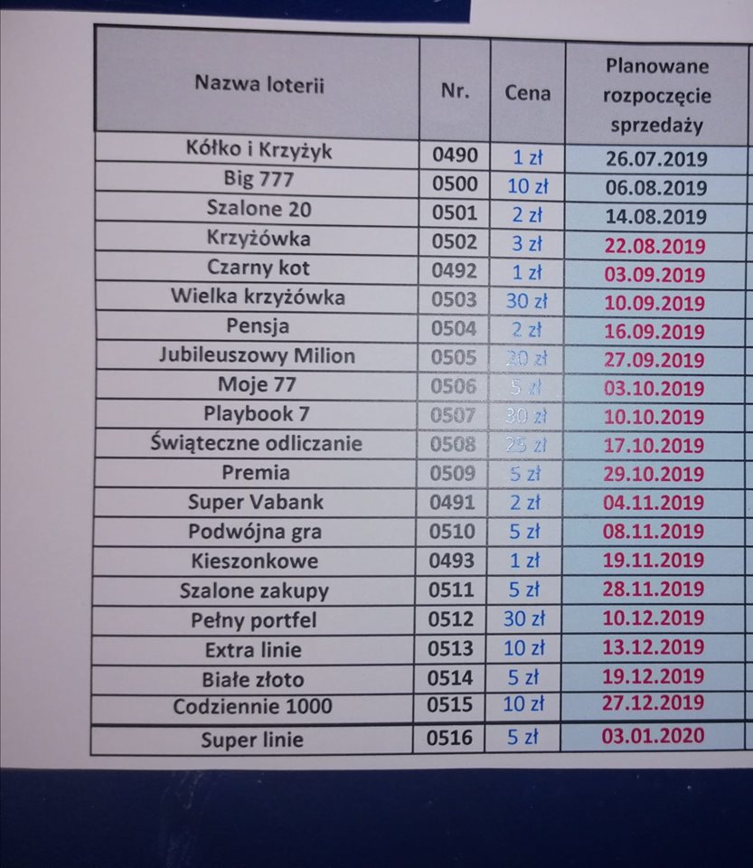 Re: Rozpoczęcie/zakończenie sprzedaży zdrapek [Przybyło - ubyło]