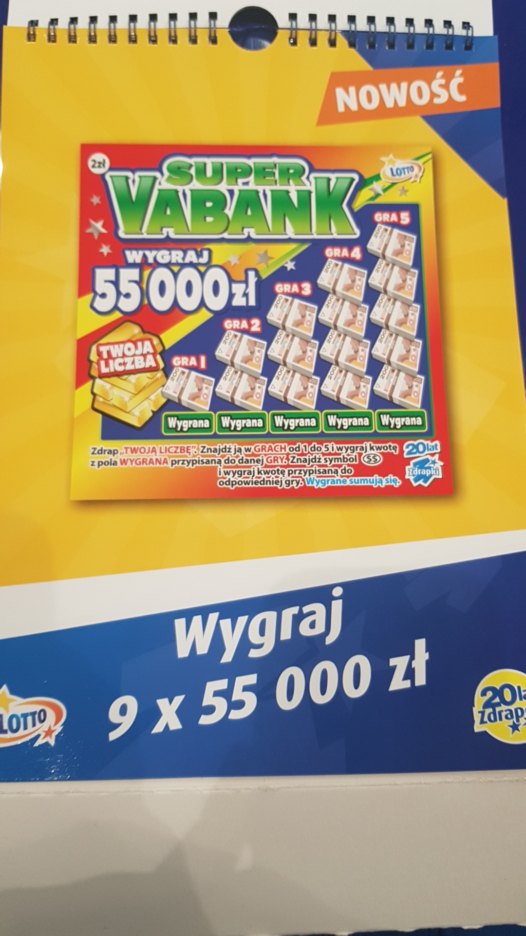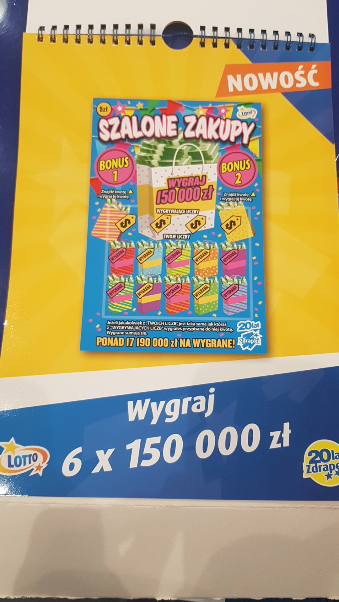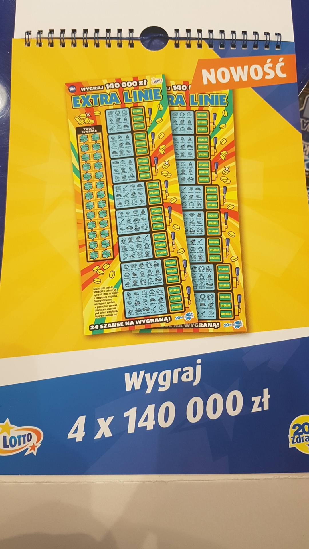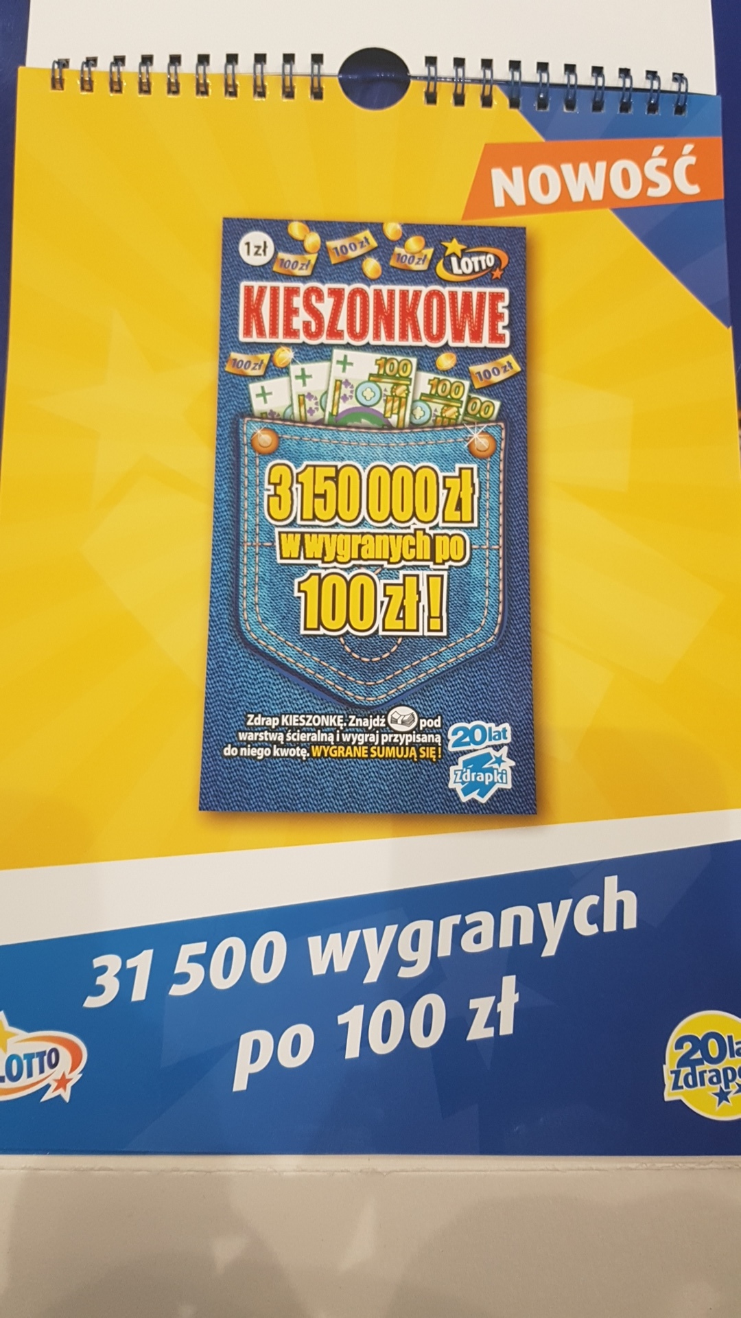 Ma być jeszcze Pełny Portfel za 30zł. Czekamy na zdjęcia i od razu chciałbym zapytać o możliwość udostępnienia tych zdjęć dalej. Dziękuję z góryLuna_83 pisze: ↑08 paź 2019, 16:42Dzisiaj pojawił się w mojej kolekturze kalendarz z nowościami. Postaram się jutro zrobić zdjęcia. Z ciekawszych rzeczy to to,że zdrapka,bodajże Podwójna gra będzie miała dodatkowo z tyłu zdrapki 4 okienka do otwarcia i jak się trafi 3 takie same symbole to się wygrywa. Z przodu natomiast będą liczby wygrywające tak jak np.w Ekstra pensji. Extra linie za 10 zł będą takie jak super linie,będzie tylko więcej rzędów. Białe złoto to taka biało-srebrna zdrapka,też znajdź liczby jak klasyka w zdrapkach za 5 zł,tylko na górze będzie jeszcze mnożnik x2,x3 i x5.Szalone zakupy za 5 zł-znajdź wygrywające liczby i dwa bonusy,coś jak Moje 77.Kieszonkowe za 1 zł-znajdź symbol banknotu i wygraj przypisaną kwotę.Piszę z pamięci,jakby co to jutro zweryfikuję te informacje![]()