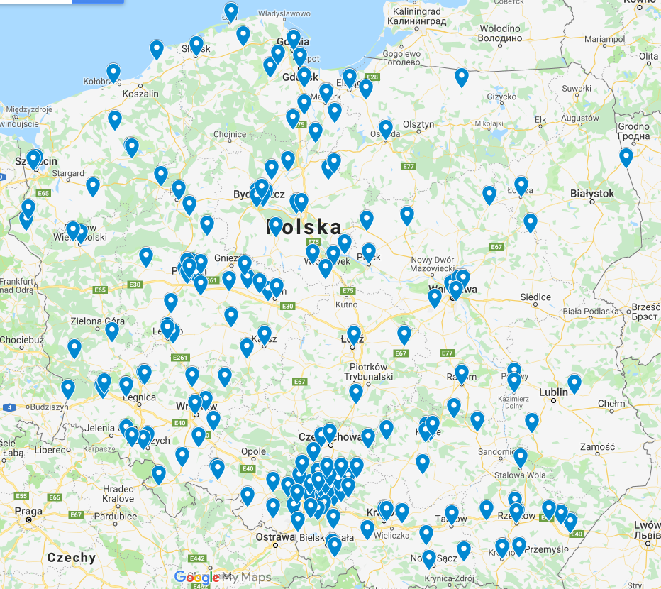 Najwięcej na Śląsku... jest ich tam tak dużo, że aż jedne znaczniki nachodzą na drugie... na mapie widać gdzie dojechały główne w 2019