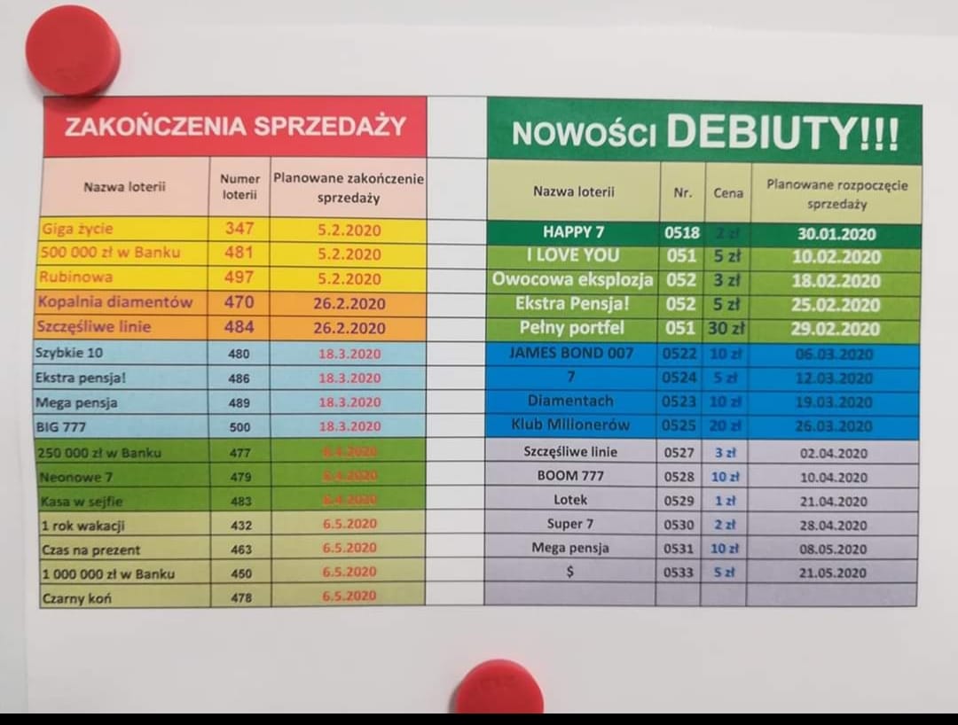 Re: Rozpoczęcie/zakończenie sprzedaży zdrapek [Przybyło - ubyło]