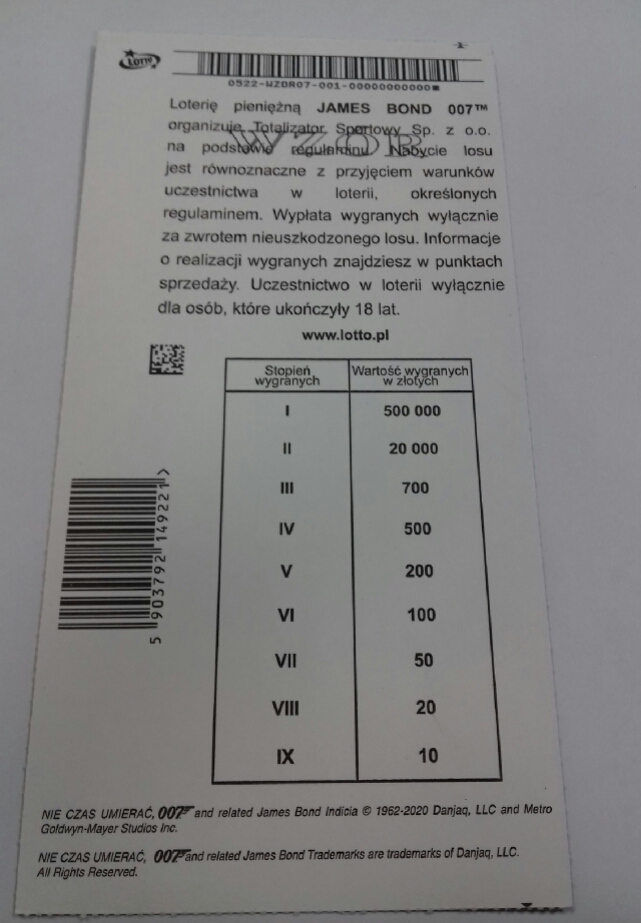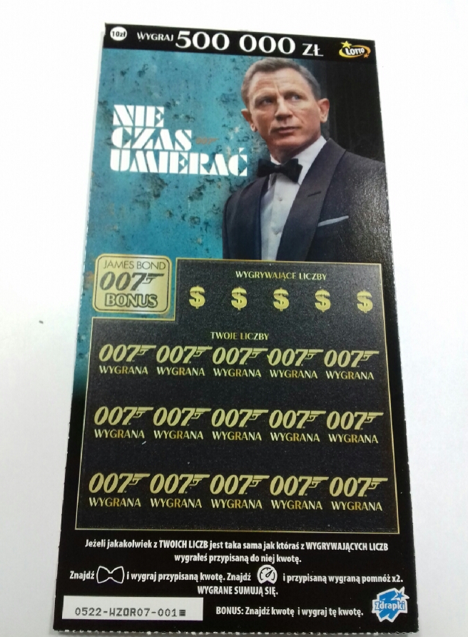 Dzięki :cool: Zastanawiam się czy ten James Bond nie wyleci. Nie było go w kalendarzu z nowościami zdrapkowymi ( tym drukowanym )