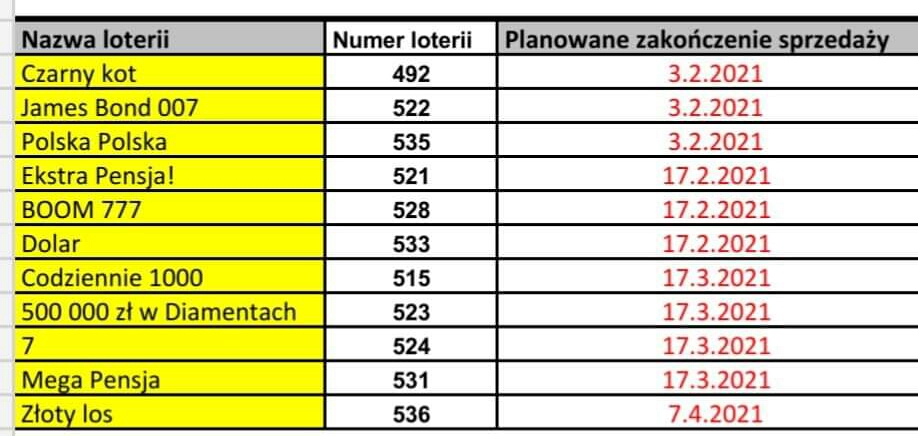 Re: Rozpoczęcie/zakończenie sprzedaży zdrapek [Przybyło - ubyło]