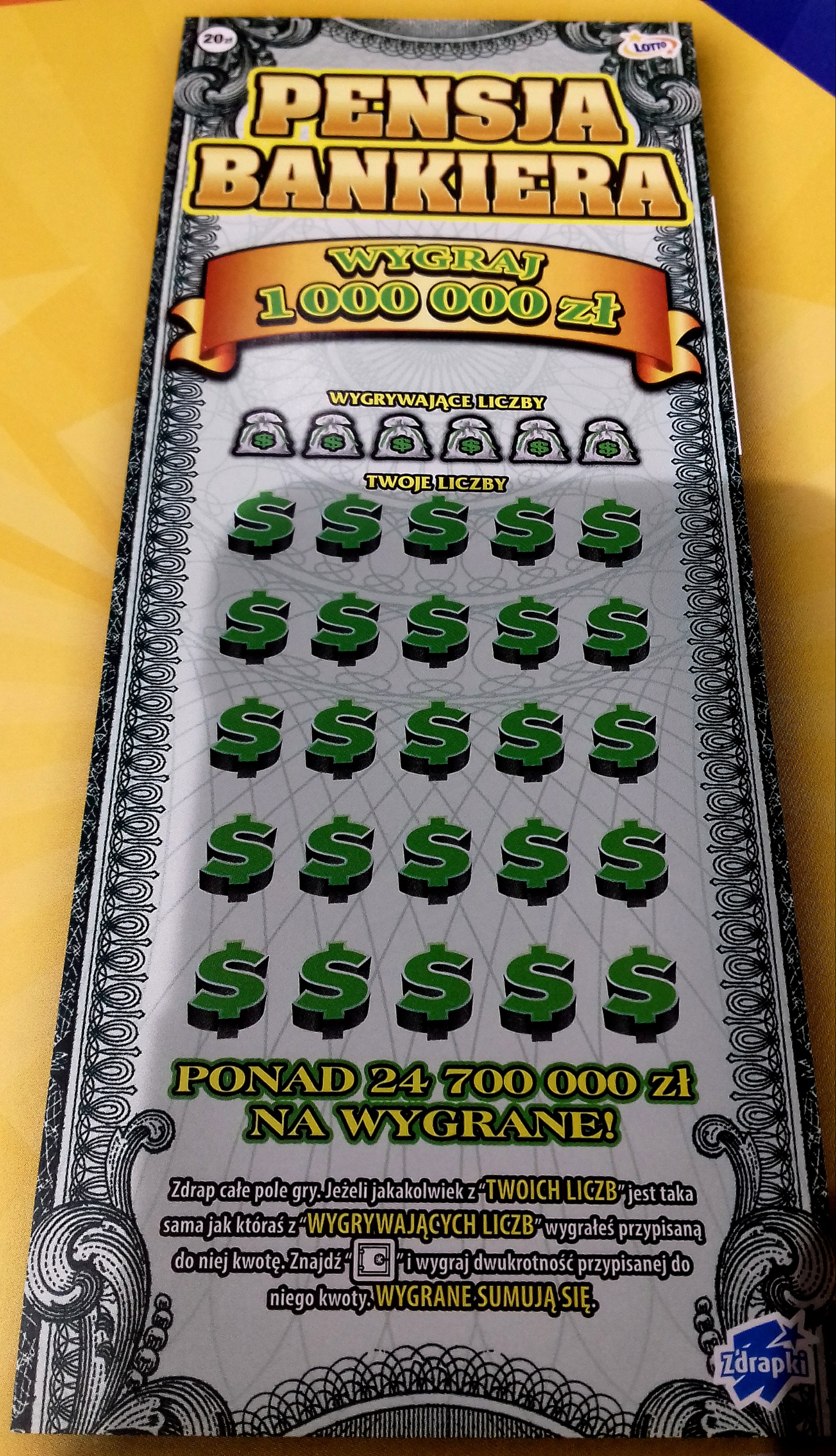 Ta jubilotka chyba ma ten efekt 3D , który już był w zdrapkach za 10 zł. A i tak to nie przyciąga za bardzo wzroku.
