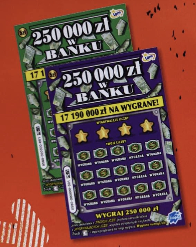 Widziałem dzisiaj wzór zdrapki Kasa Kasa. Jest utrzymana w pomarańczowej, właściwie ognistej tematyce. Pole gry i wygrane identyczne jak w Podwójnej grze, ale wydzieranki chyba nie ma.