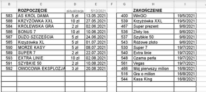 Re: Rozpoczęcie/zakończenie sprzedaży zdrapek [Przybyło - ubyło]