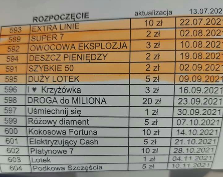 Re: Rozpoczęcie/zakończenie sprzedaży zdrapek [Przybyło - ubyło]