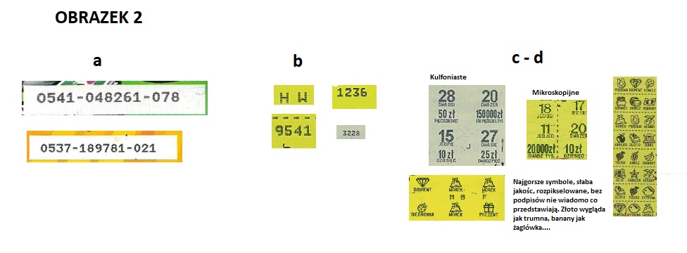 a - charakterystyczna "ładna" czcionka numeru zdrapki, a sam numer jest w owalnej ramce
