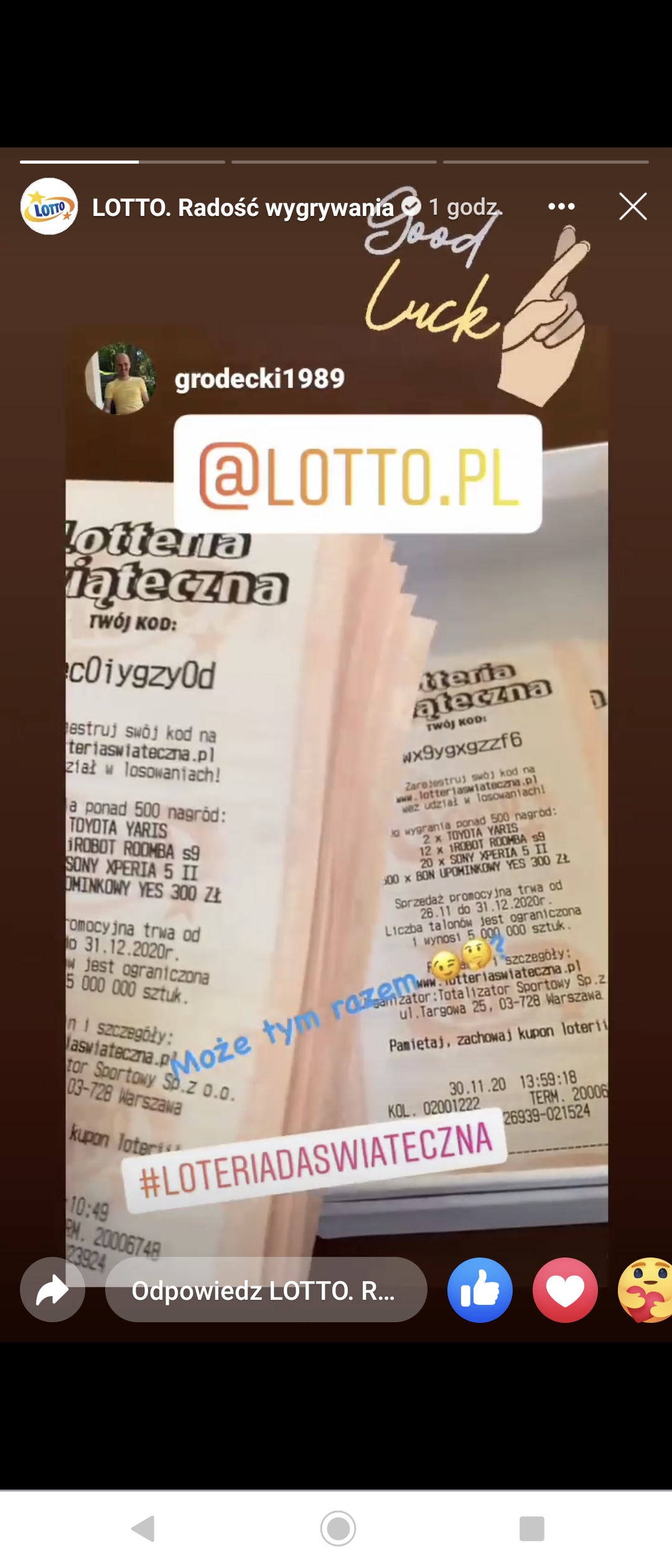 Najlepiej jak to ktoś zrobił w poprzedniej edycji, w loteriadzie chyba. Nagroda wpadła przy kilku wpisanych kodach, wydaje mi się, że ilość zgłoszeń ma tu niewiele wspólnego. Być może kody są losowane po lokalizacji, rozkładają nagrody równo po kraju.
